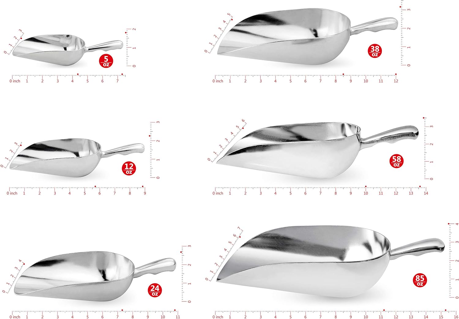- Commercial-Grade Aluminum utility scoop great for ice, sugar, flour, popcorn, and candy.