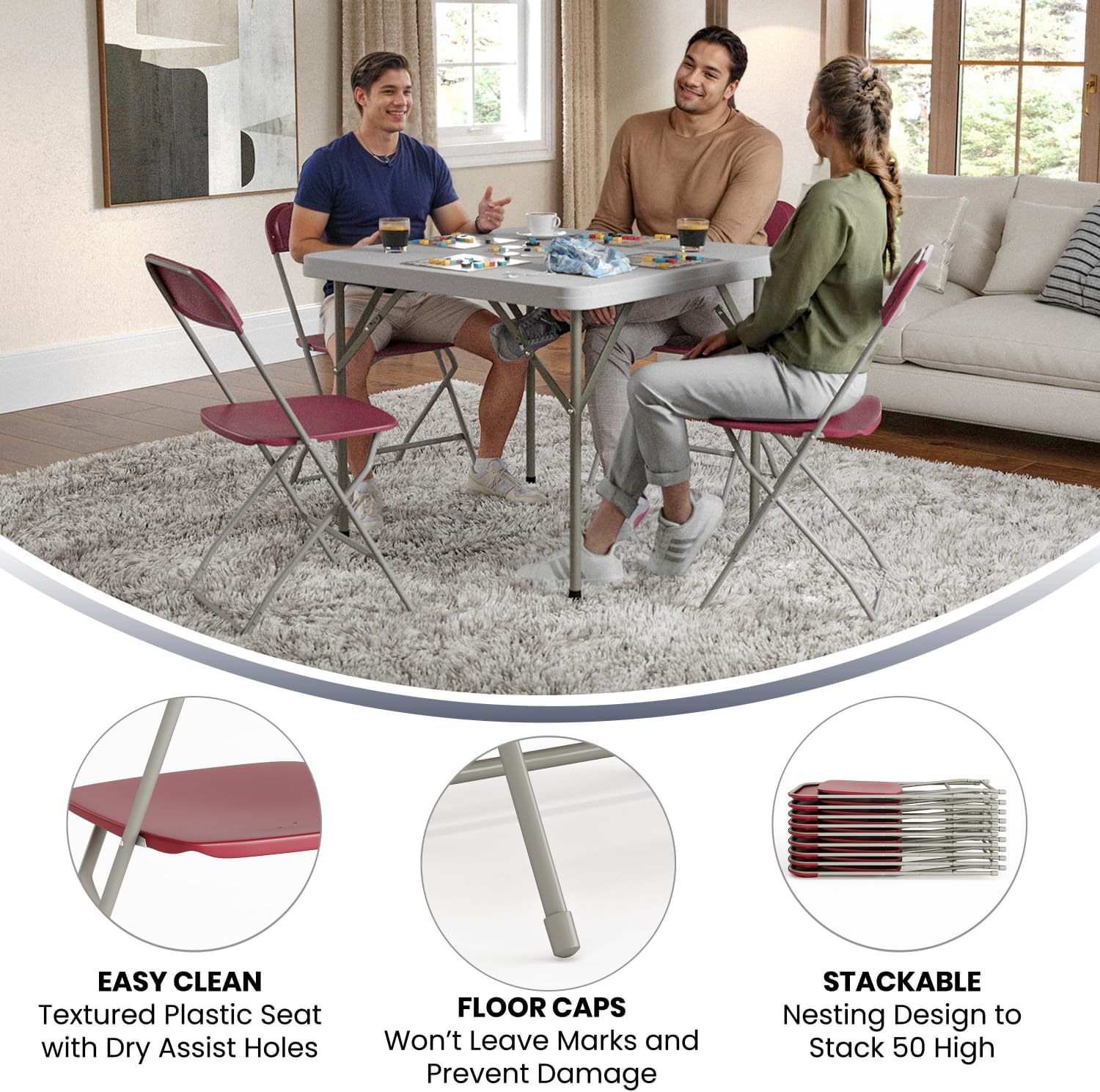 - Lightweight plastic folding chairs provide commercial-grade, on-demand seating solutions; foldable stack chairs are a smart investment for business and home usage