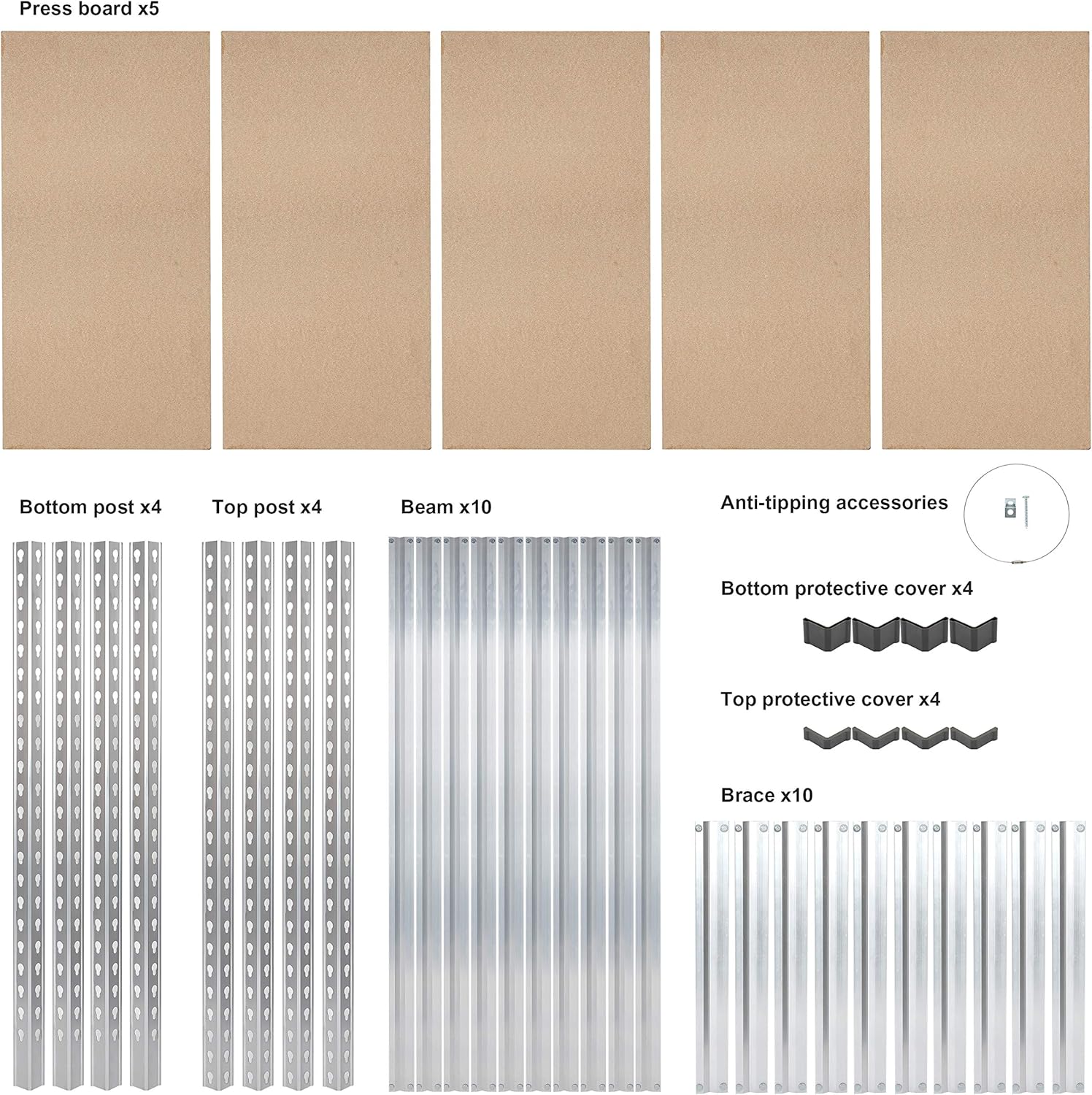 - Made of durable high-grade aluminum construction frame and particle board. Board shelves adjust up or down in 1-1/2-inch increments