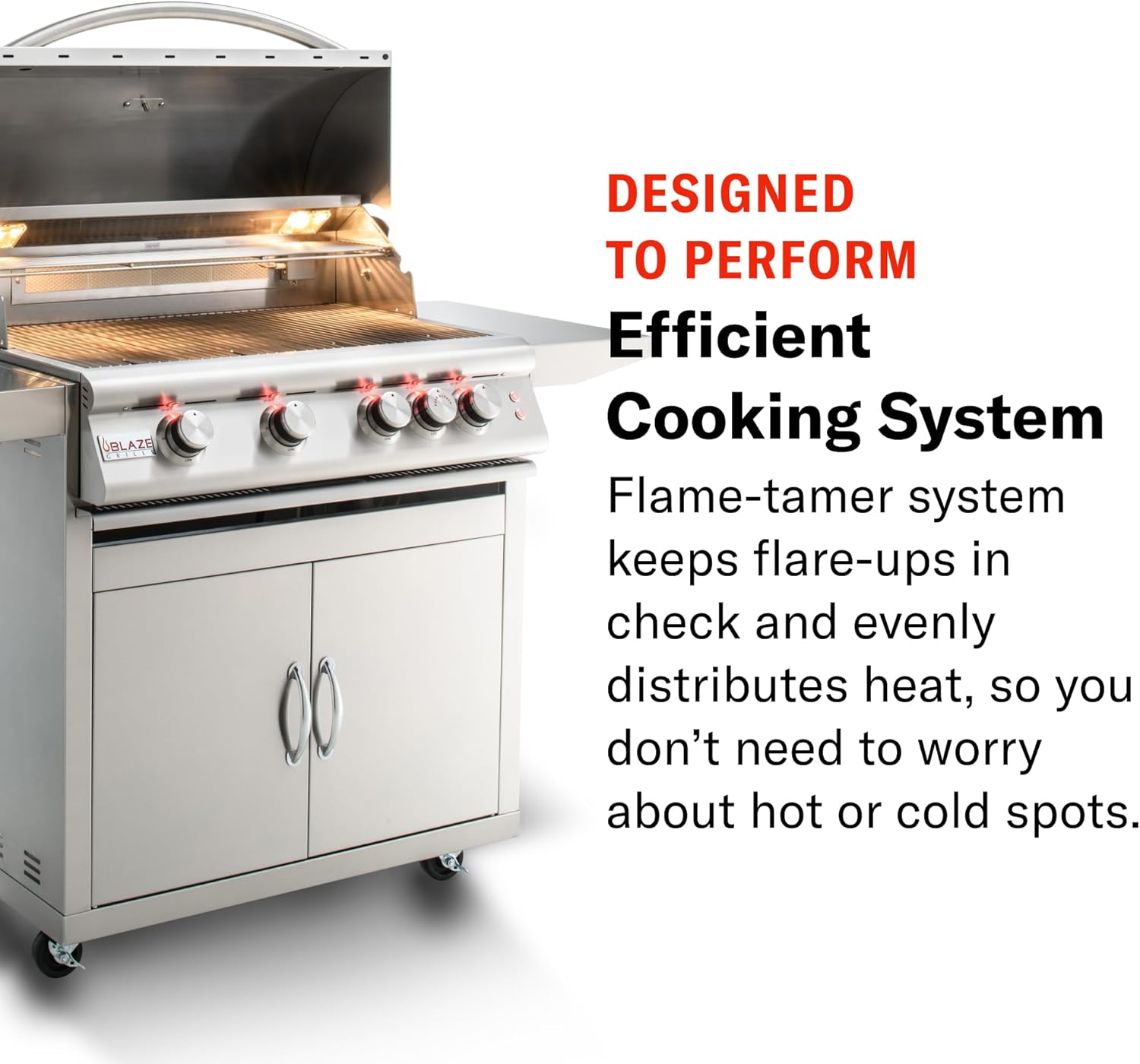 Blaze Outdoor Grill | 32-inch Stainless Steel Natural Gas BBQ Grill | 4 Burner Barbecue | Premium Outdoor Kitchen Grilling | Rear Infrared Burner & Grill Lights | BLZ-4LTE2-NG
