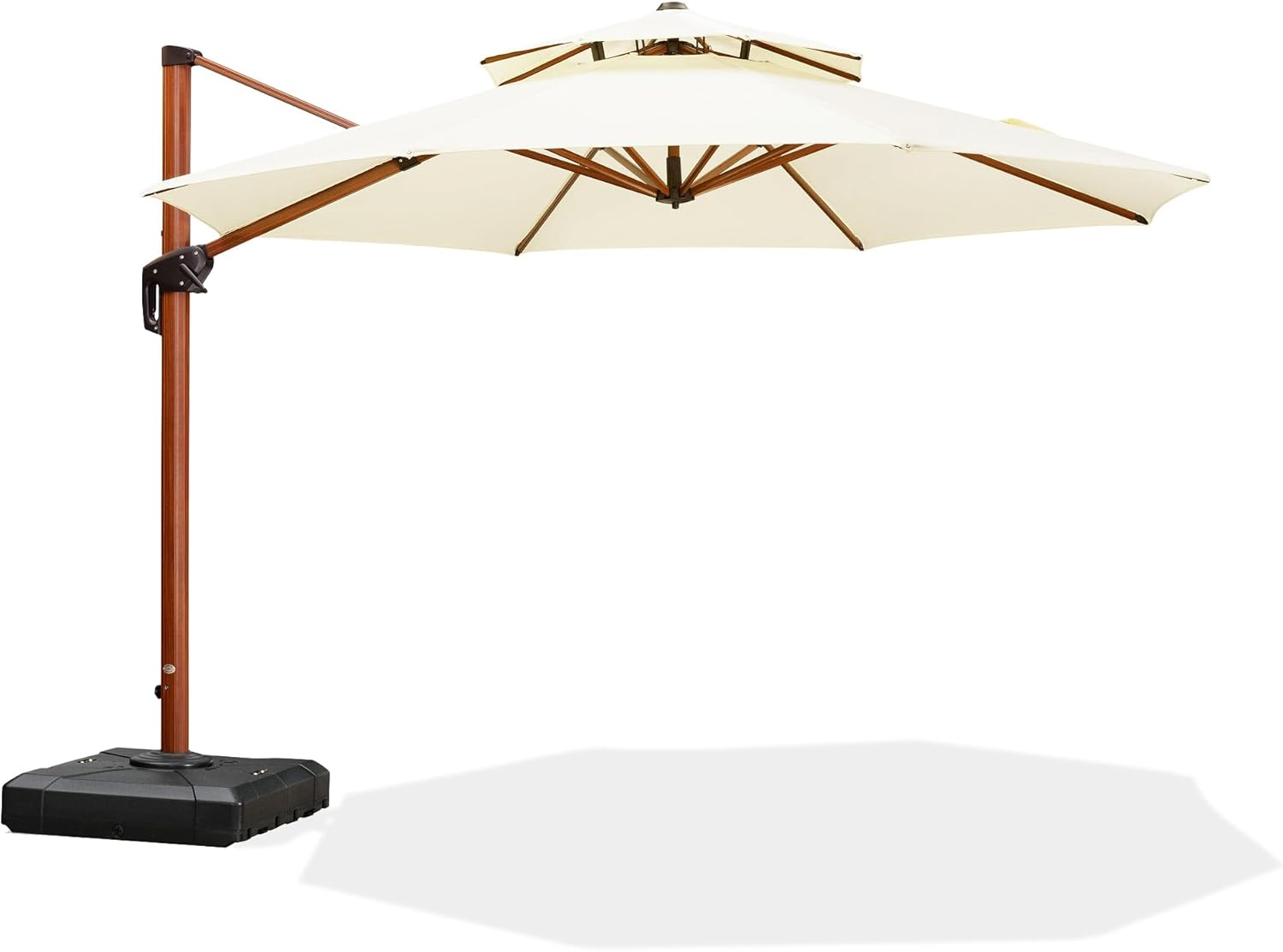 PURPLE LEAF 11ft Patio Umbrella Outdoor Round Umbrellas Large Cantilever Umbrella Windproof Offset Umbrellas Heavy Duty Sun Umbrella for Garden Deck Pool Patio, Cream