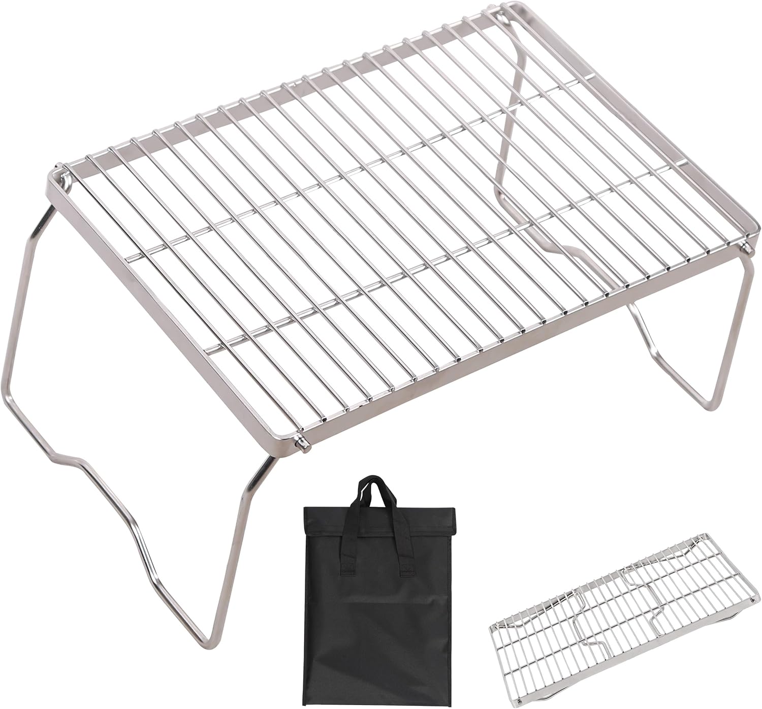 - HIGH QUALITY MATERIAL: The over-the-fire camping grill is made of 304 stainless steel grate and the legs are made of 201 stainless steel. This helps the grill resist oxidation and corrosion. Stainless steel also makes it lighter and more durable than iron.