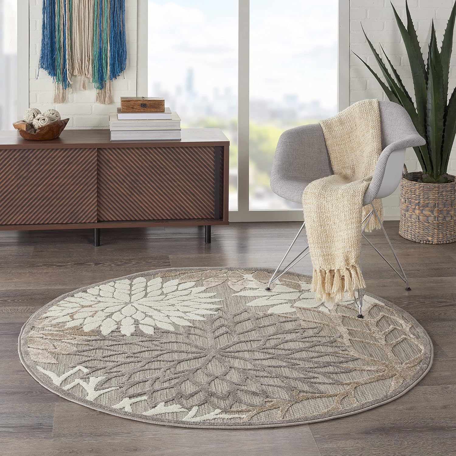 Nourison Aloha Indoor/Outdoor Area Rug 4', Natural, Round Tropical Botanical Easy -Cleaning Non Shedding Bed Room Living Room Dining Room Deck Backyard Patio
