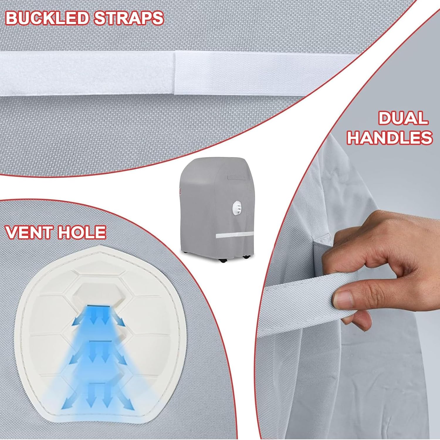 - 【Feature】- Durable handles and straps on both sides for fixing the cover. Handles provide convenience for fitting and removal. Straps help tighten and prevent the cover from being blown off. The air vent hole would ensure that your gas grill wouldn't become dirty and keep dry.