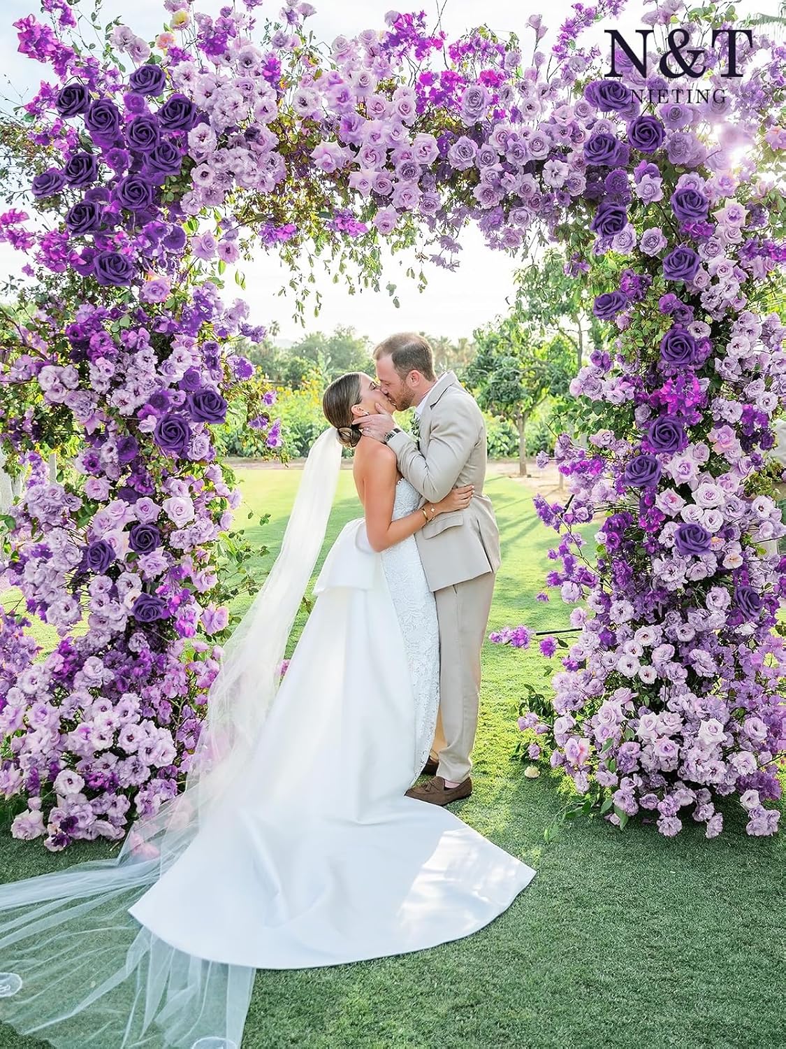 N&T NIETING Artificial Flowers, Fake Flowers Roses Perfect for DIY Wedding Bridal Bouquets Centerpieces Bridal Shower Party Home Flower Arrangement Halloween Flowers Decorations, 25Pcs, Dusty Purple