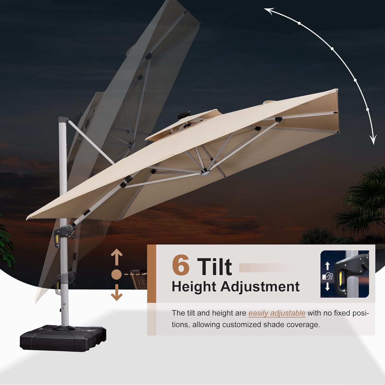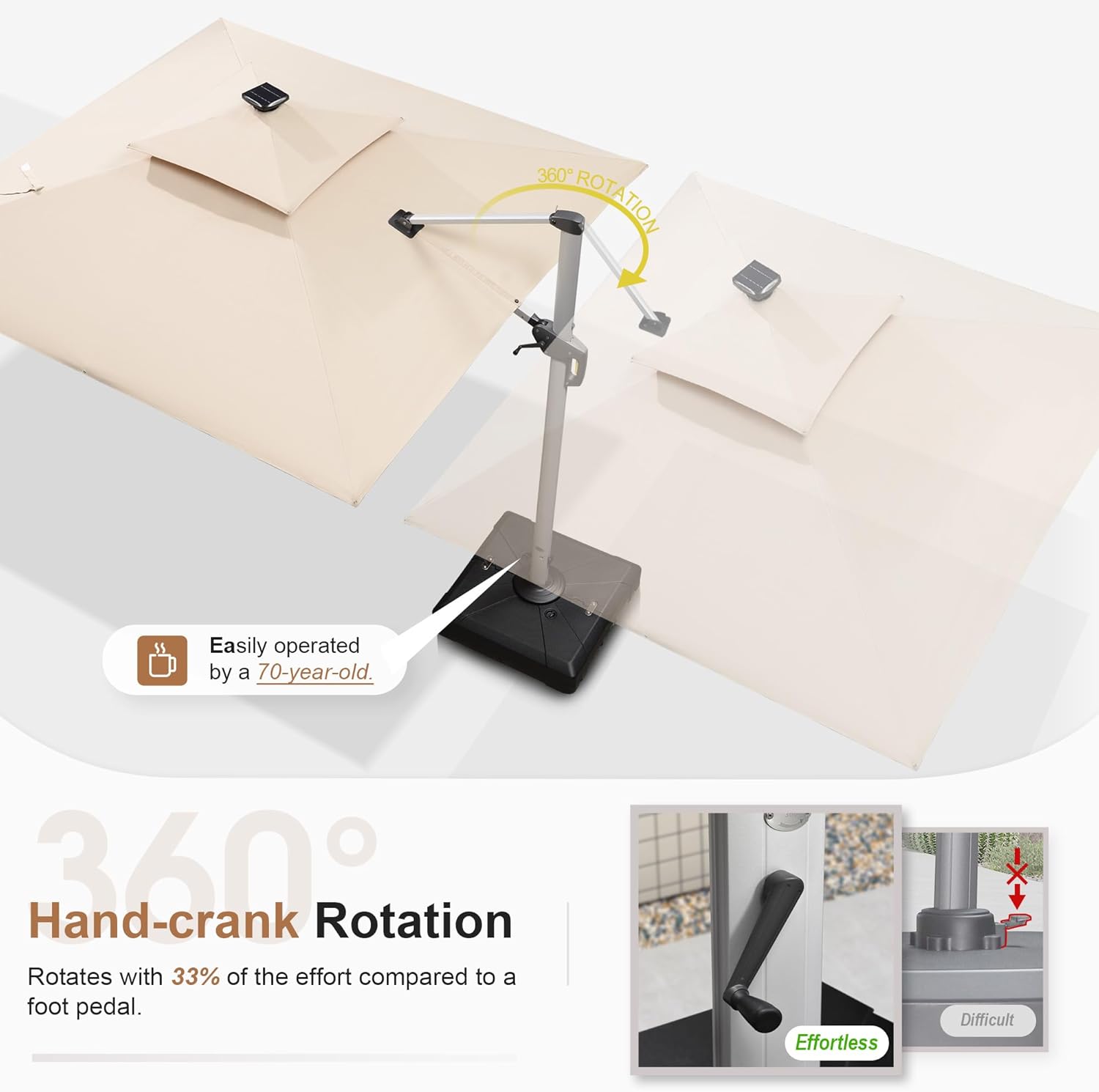 PURPLE LEAF 11 Feet Double Top Deluxe Solar Powered LED Square Patio Umbrella Offset Hanging Umbrella Outdoor Market Umbrella Garden Umbrella, Beige