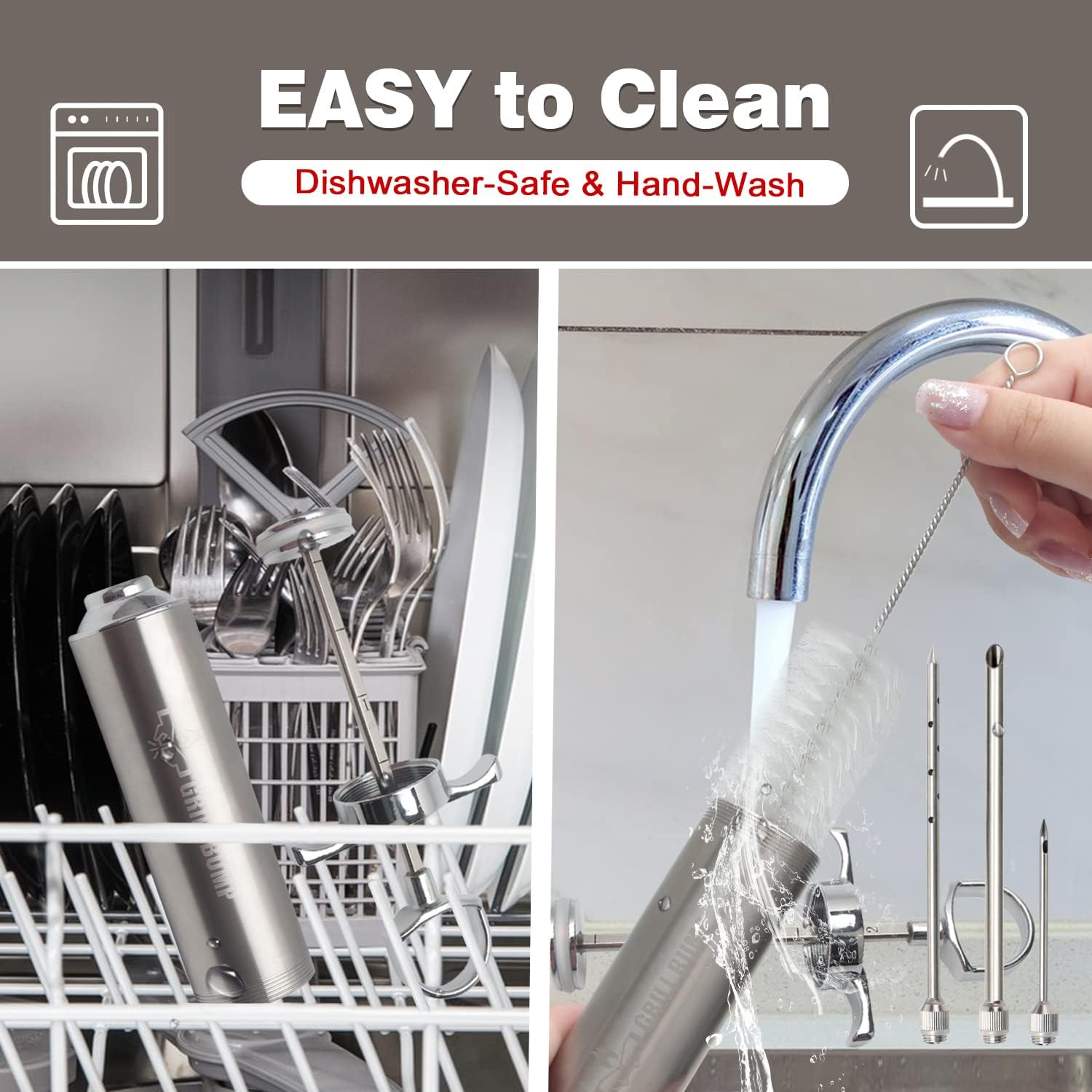 - Easy to Use &Storage-Ergonomic threaded design, plunger handle offers a comfortable grip and friendly pressure control; 3 interchangeable turkey needles give you three chooses with different meat size; EVA case will help you prevents the parts missing. Hand wash and dishwasher safe