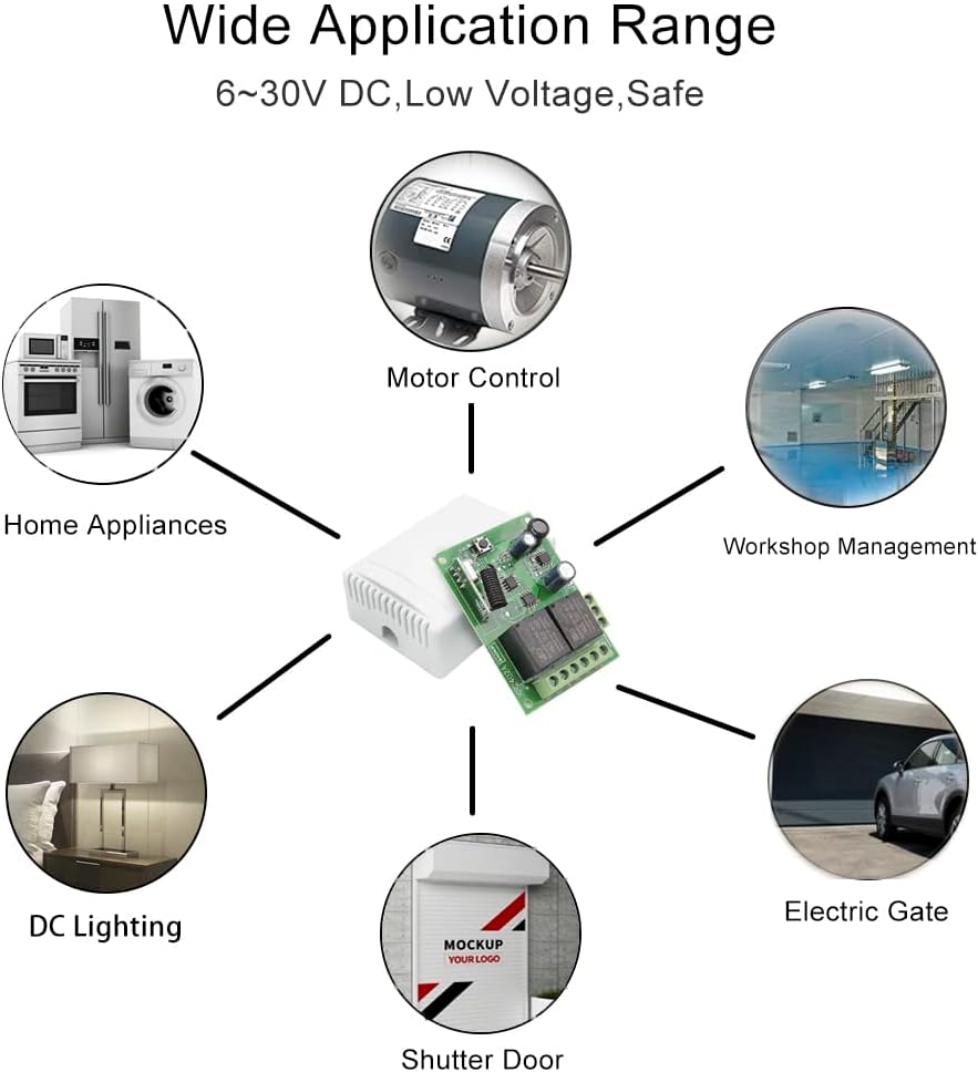 - 【4CH for More Control】Adjustable working way, switch Momentary / Toggle / Latched. All remote control switch kits support 433mhz frequency. Learning code has high-level security for its low repetitive rate and re-learn mode, by which it can delete the old code and re-learn a new code when a remote control get lost, so you are always in control of it.