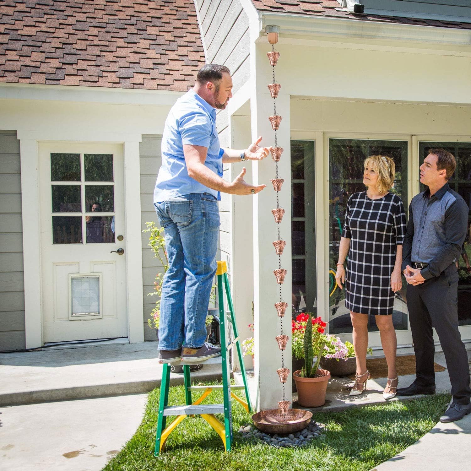 - ORNATE DESIGN: Our rain chains feature 12 bell cups with 5 antique color finishes that complement any roof or garden decor.