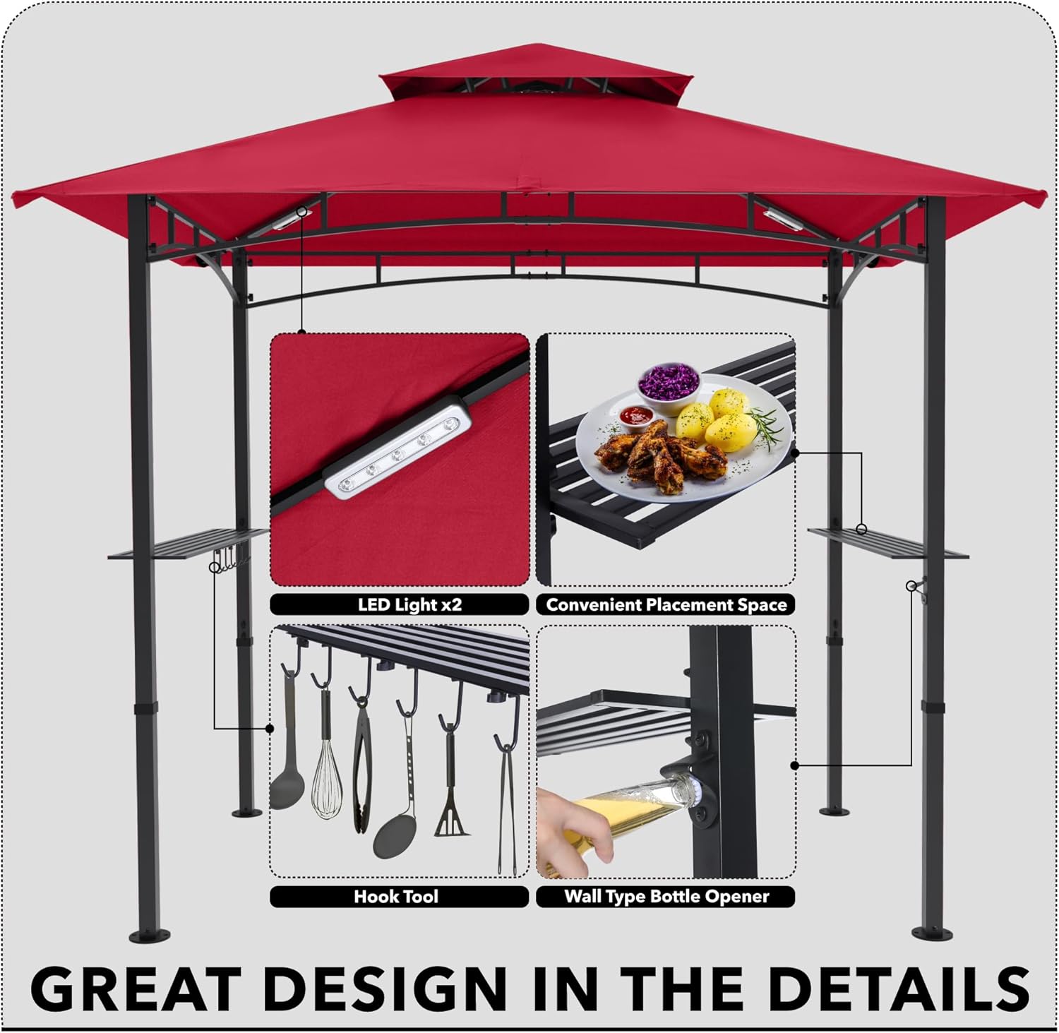 MASTERCANOPY 8 x 5 Grill Gazebo Outdoor BBQ Gazebo Canopy with 2 LED Lights (Burgundy)