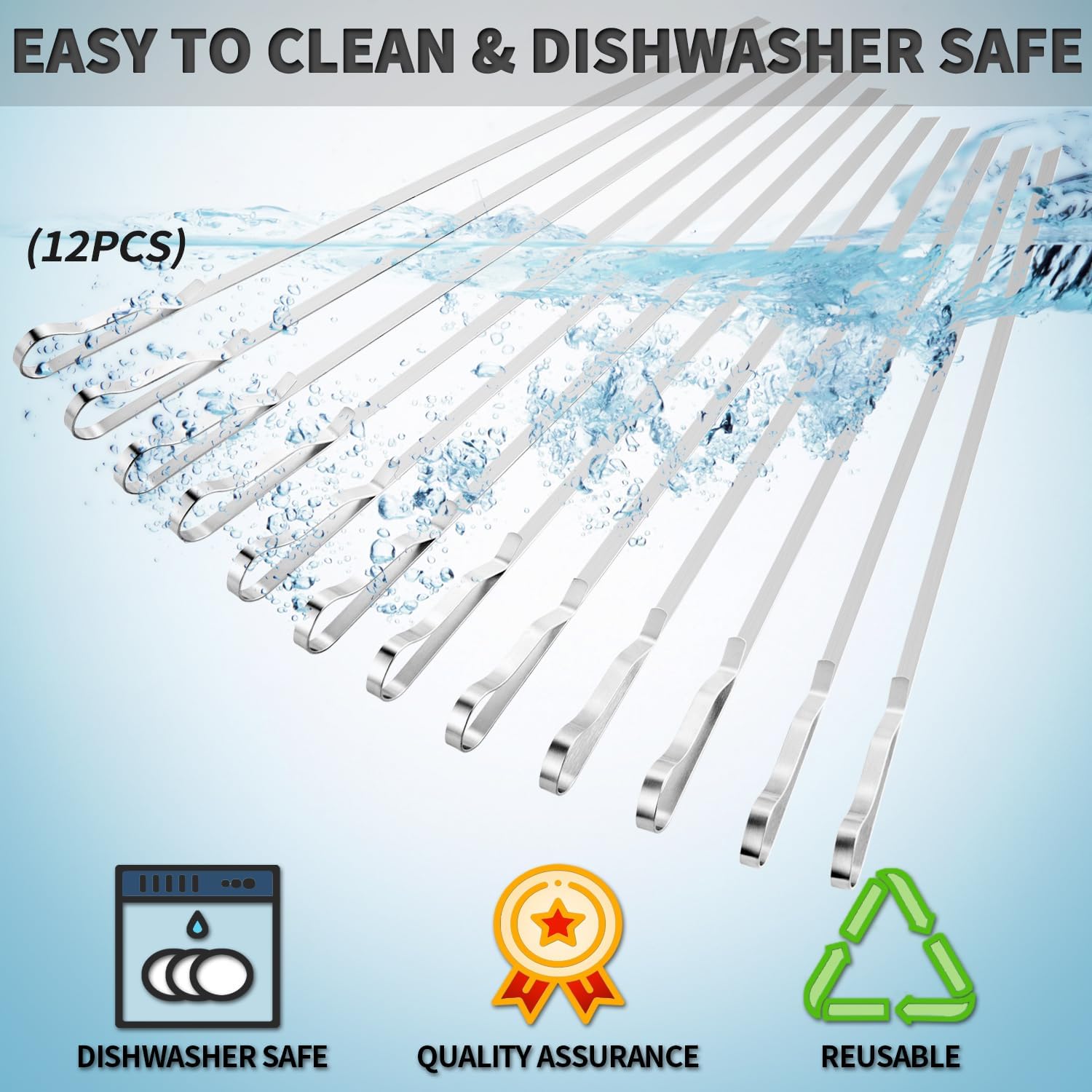 - 【DISHWASHER SAFER, REUSABLE】The kebab skewers surface is smooth that grilled food residue won’t get stuck onto the kabob skewer blade. After each time’s use just threw them in dishwasher. After wash the metal stick will be like new. You can use again and again, totally save you money.