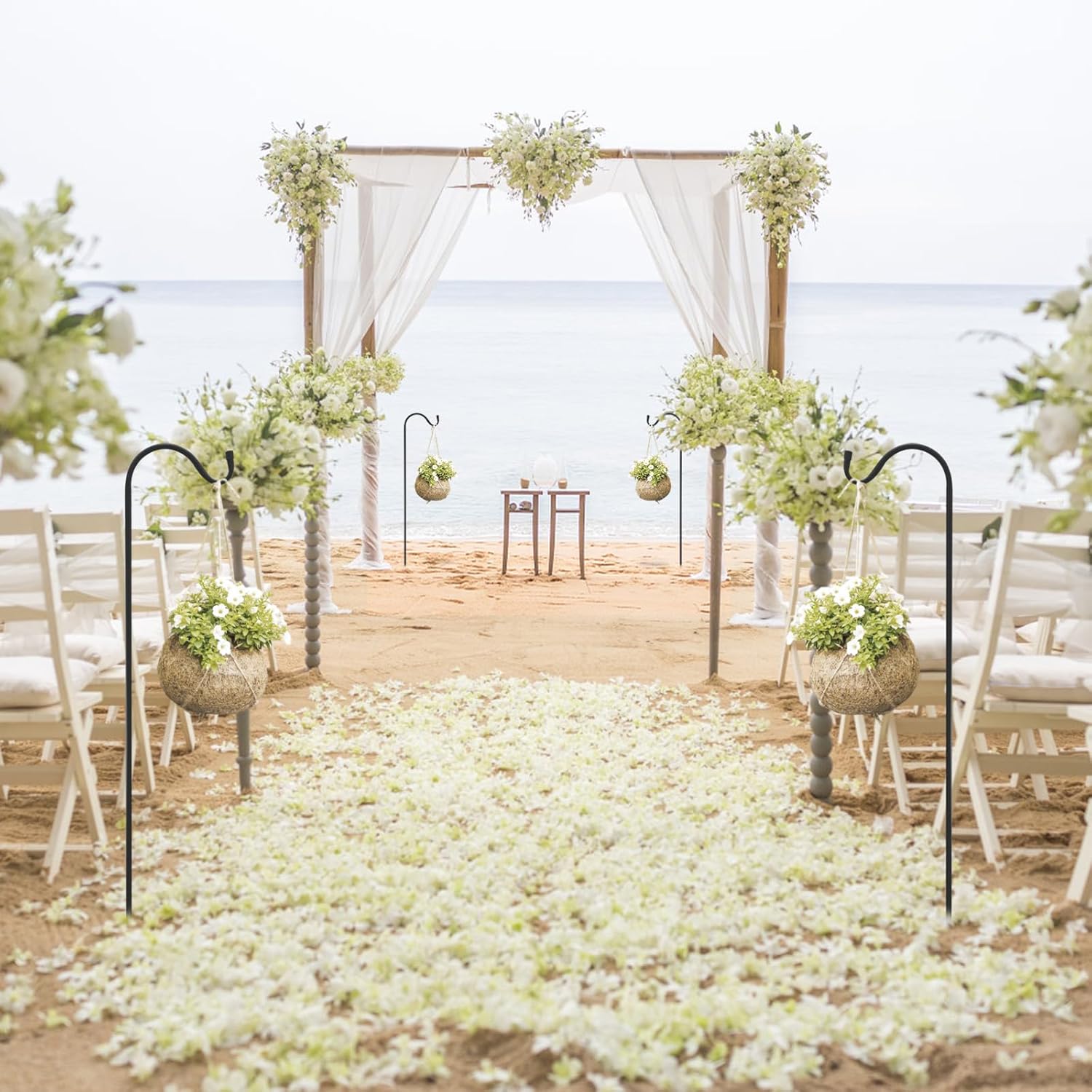 - Multiple applications of shepherd hooks: Garden shepherd's hooks are suitable for outdoor wedding aisles, and can also be used to hang flower pots, bird feeders, solar lights, lanterns, flower pots,decorations, flower balls, garden lights, glass bottles, holiday decorations, string lights, bird baths, plant racks and other garden decorations