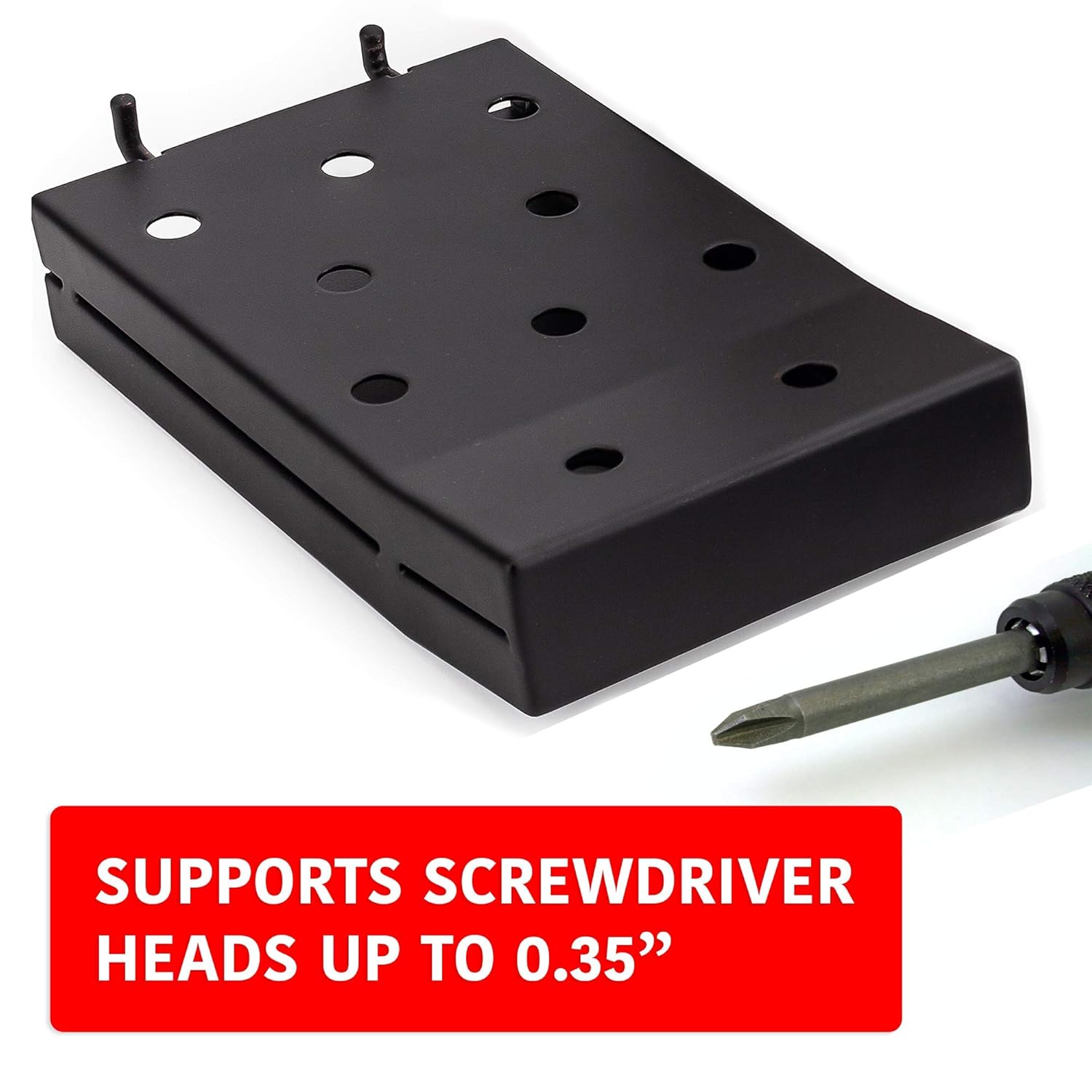 - Durable and Reliable - These pegboard hooks are made with high-quality materials, ensuring they can handle the weight of your tools. They are suitable for use with heavy duty pegboard hooks, metal pegboard hooks, and other pegboard hook assortments. Please note that our screwdriver holder holes have a 1/3" diameter so it's not suitable for extra large screwdriver with head or stem diameter of over 1/3".