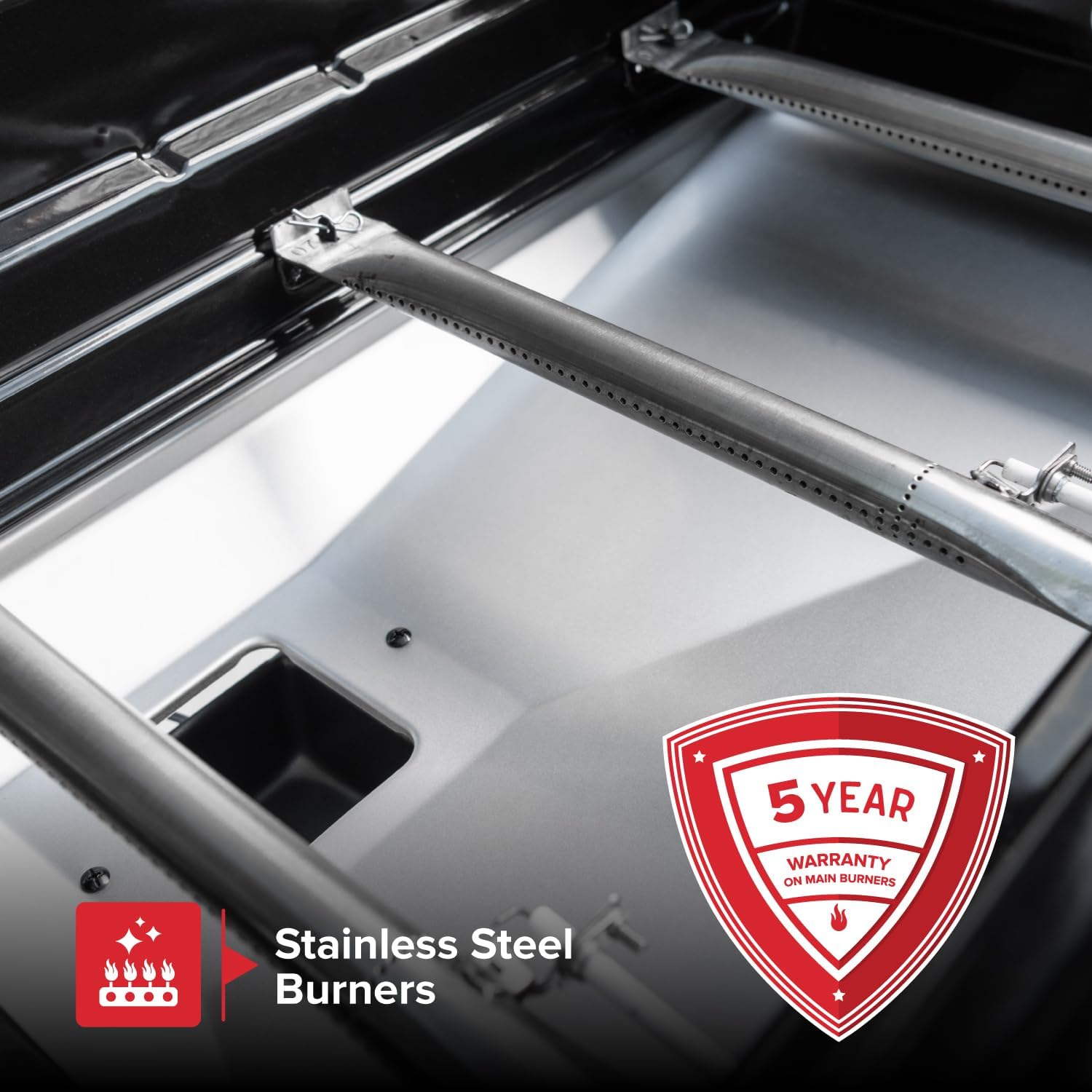 - 【VERSATILE HIGH-EFFICIENCY HEATING】Featuring three 13,500 BTU stainless steel burners and a side burner, this barbeque grill delivers rapid, efficient heating for flavorful meals meeting all your cooking needs, from grilling to simmering soups
