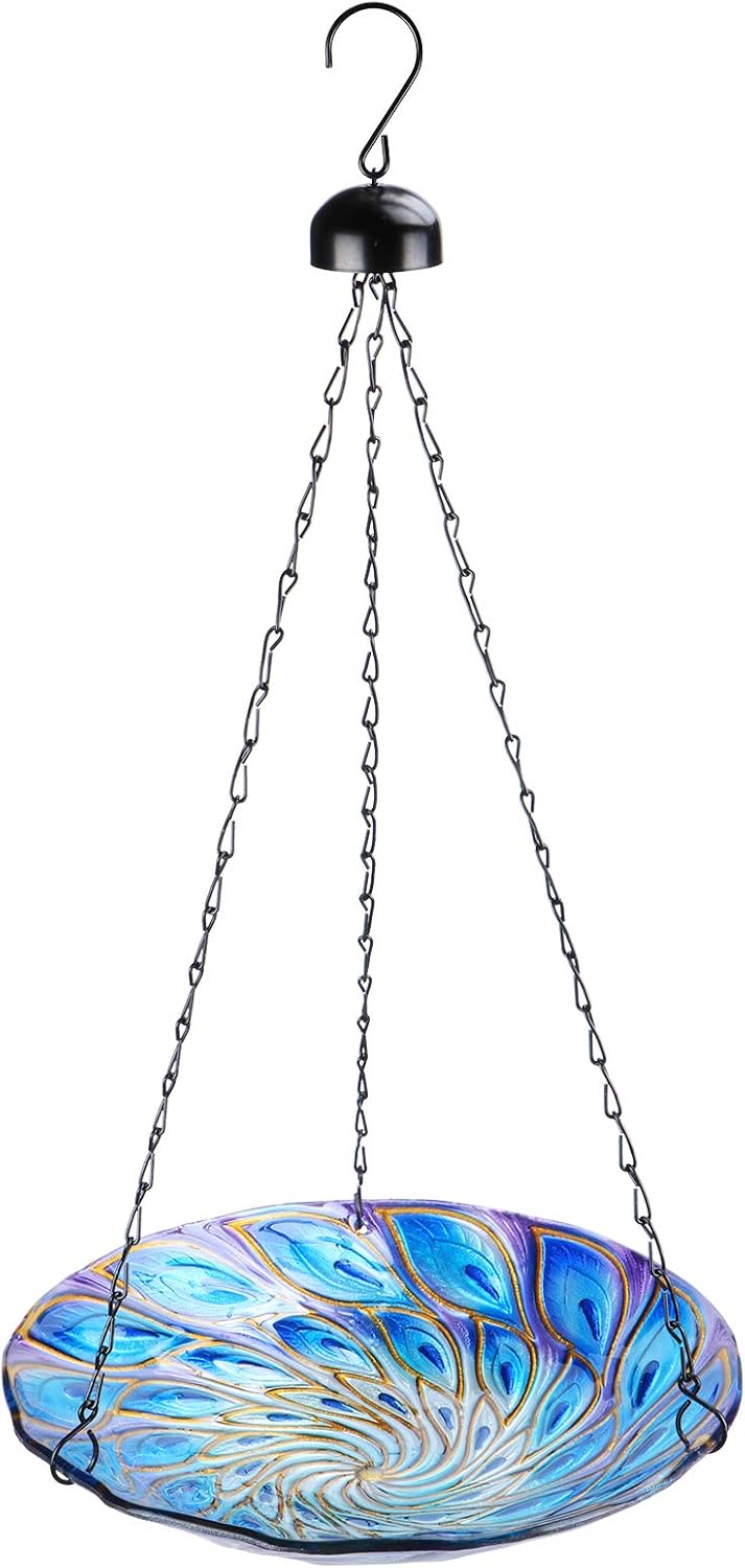 VCUTEKA Hanging Bird Baths Outdoor Glass Peacock Birdbath Birdfeeder for Garden Yard Decoration