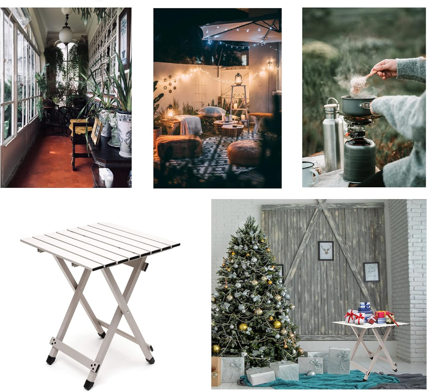 - Outdoor Side Table: Lightweight folding side table is ideal for outdoor activities like picnics, tailgating, RVing, fishing, and road trips. folding aluminum camp table is great for 2 people for dining, or can be used as a side table.
