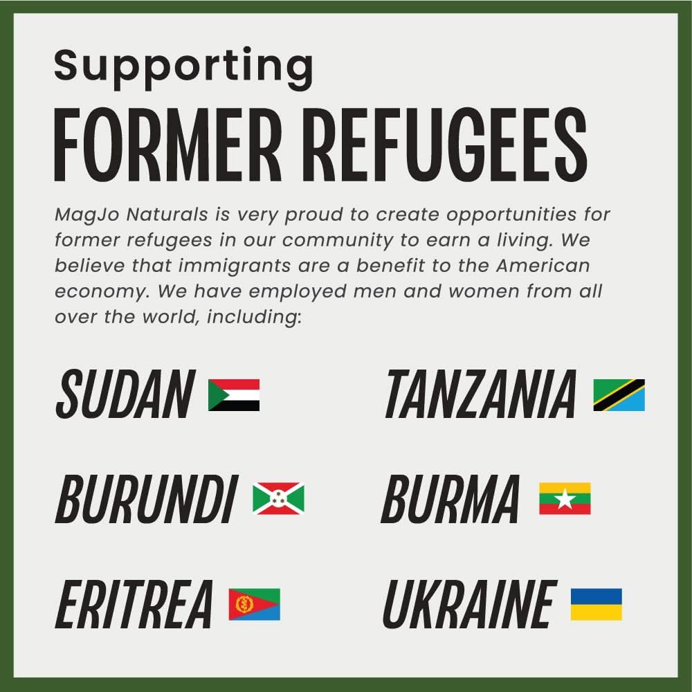 - ABOUT US - We are proud employers of former refugees who are trying to restart their lives in the USA. We believe immigrants are a benefit to our nation. All of our sold products employ as many former refugees as our business can sustain.