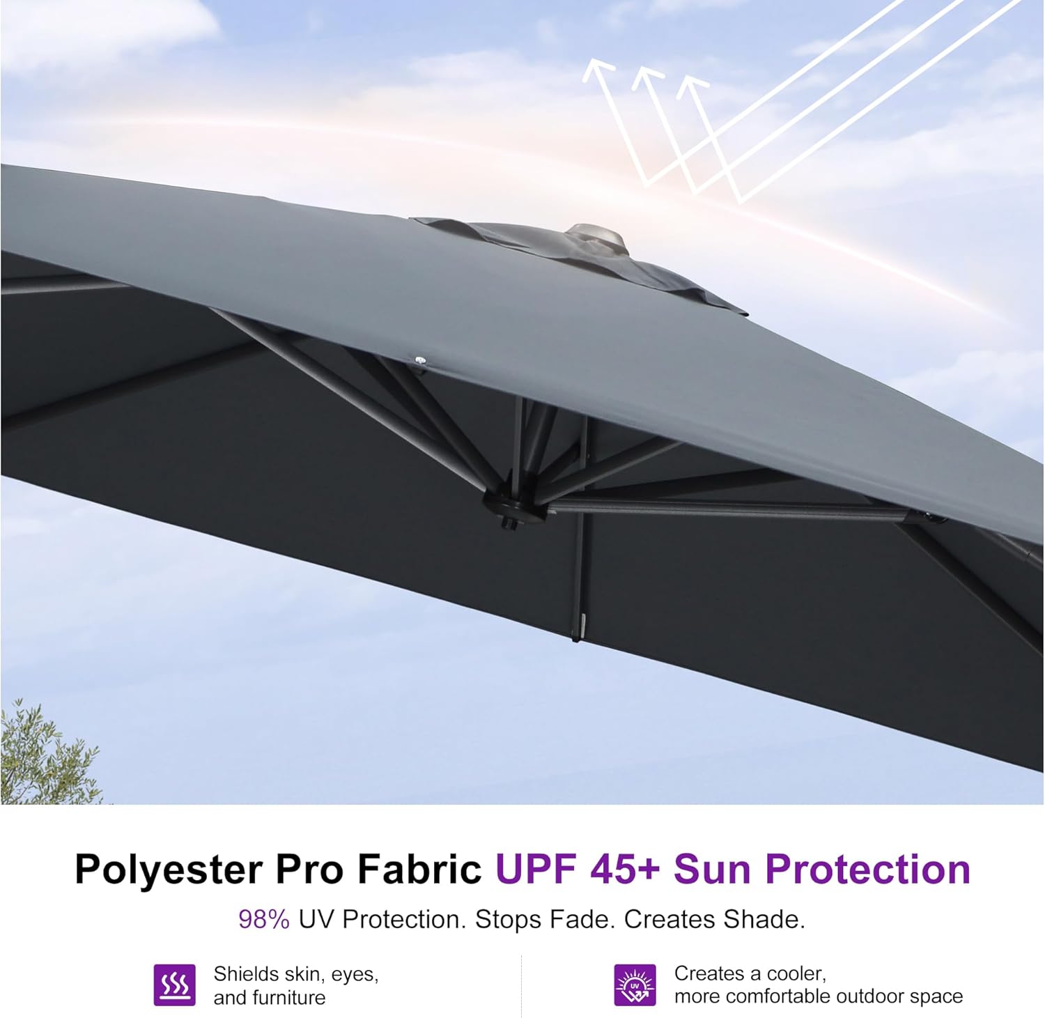 PURPLE LEAF 9 Feet Patio Umbrella Outdoor Cantilever Square Umbrella Aluminum Offset Umbrella with 360-degree Rotation for Garden Deck Pool Patio, Grey