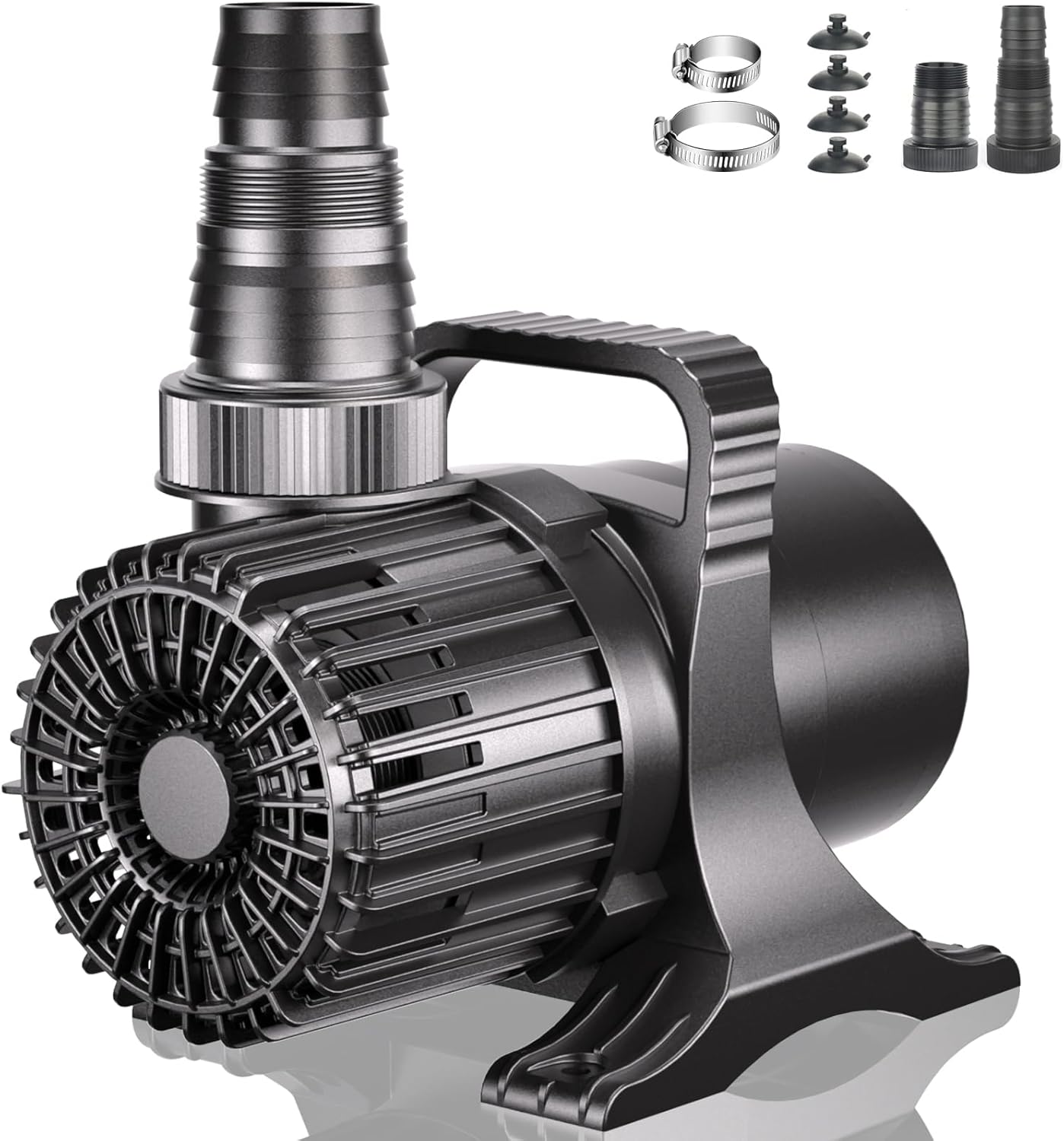 - ULTRA QUIET & OVER-HEAT PROTECTION - Our pond pump is designed to be nearly silent. It features a unique inlet mesh cover that prevents garbage suction as well and reduces motor sounds, ensuring your water bodies are quietly circulated and maintained.Engineered for 24-hour continuous use, while a heat-overload sensor prevents a burnout