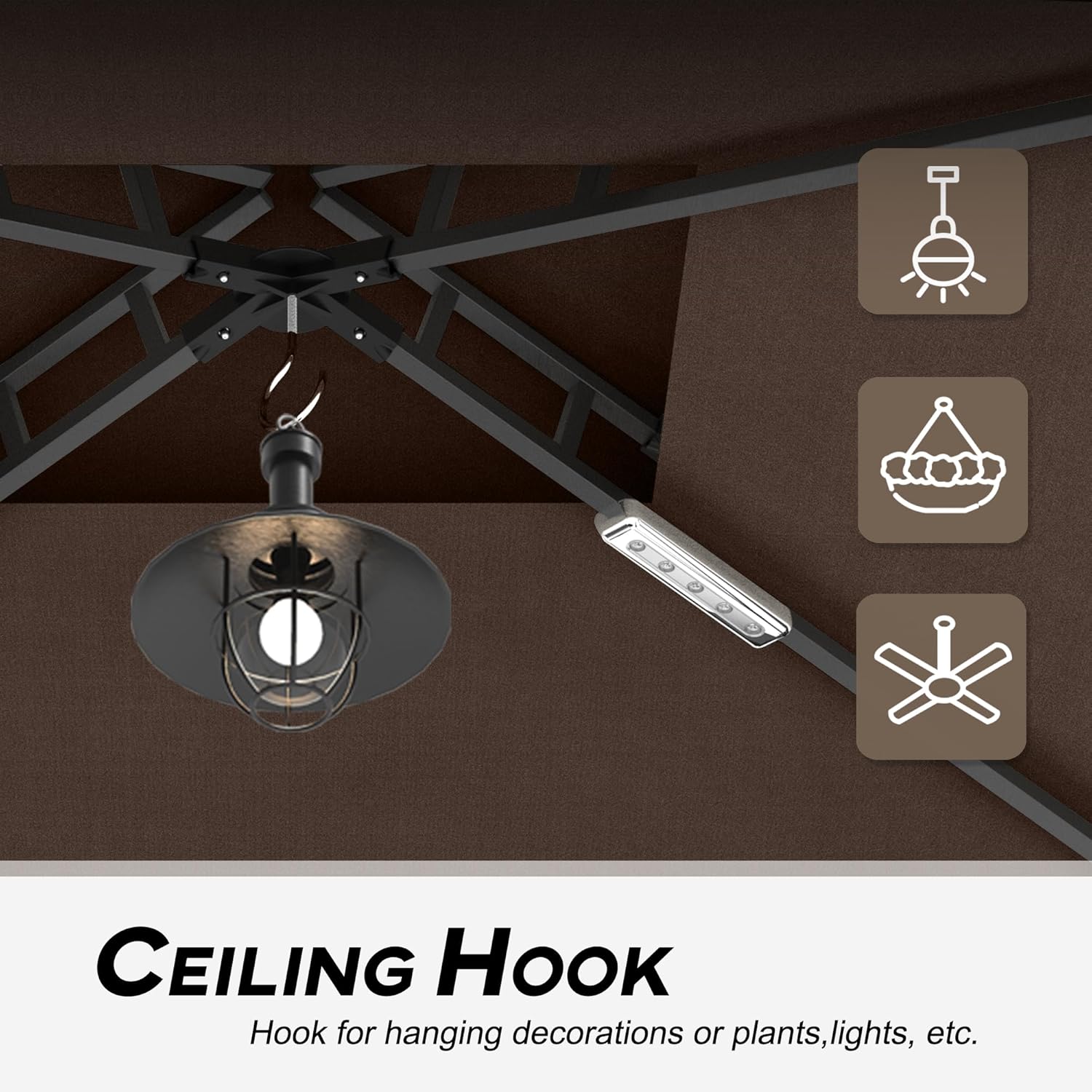 COOSHADE 8'x 5' Grill Gazebo Double Tiered Outdoor BBQ Gazebo Canopy with LED Light (Brown)