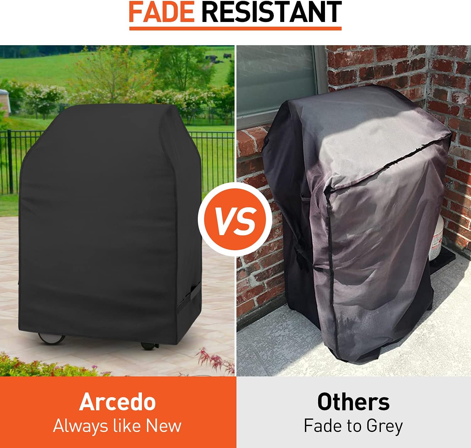 - Fade Resistant - Made of solution-dyed Polyester fabric which is highly resistant to UV fading, provides exceptional durability to sunlight, the durable grill cover for outside will not fade to gray easily in the sunlight, keeps its solid black color for all seasons.