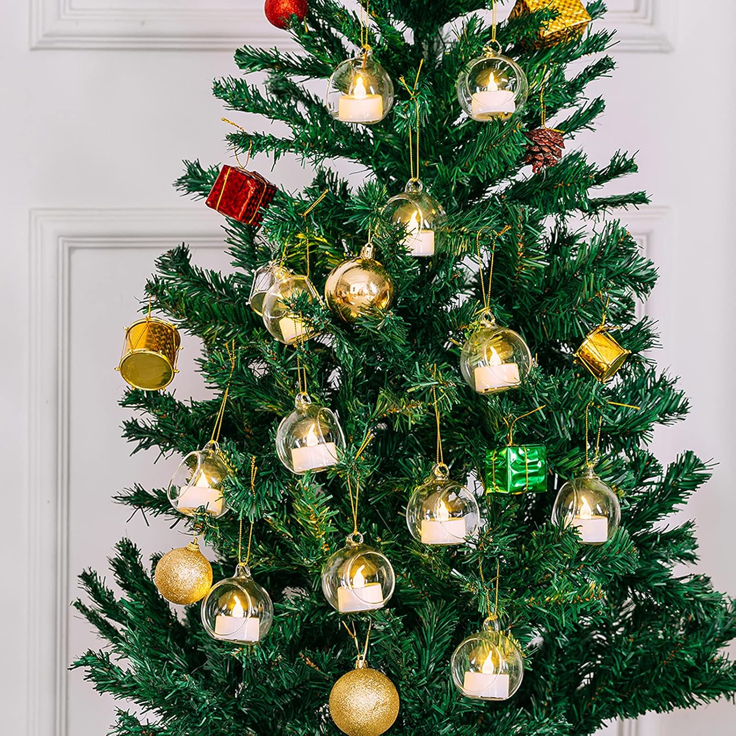 - FEATURE: These glass decoration tealight holders come with a small hook at the top so you can hang it from anywhere in your home. The bottom of the globe is flat, allowing you to place these at any flat surface.