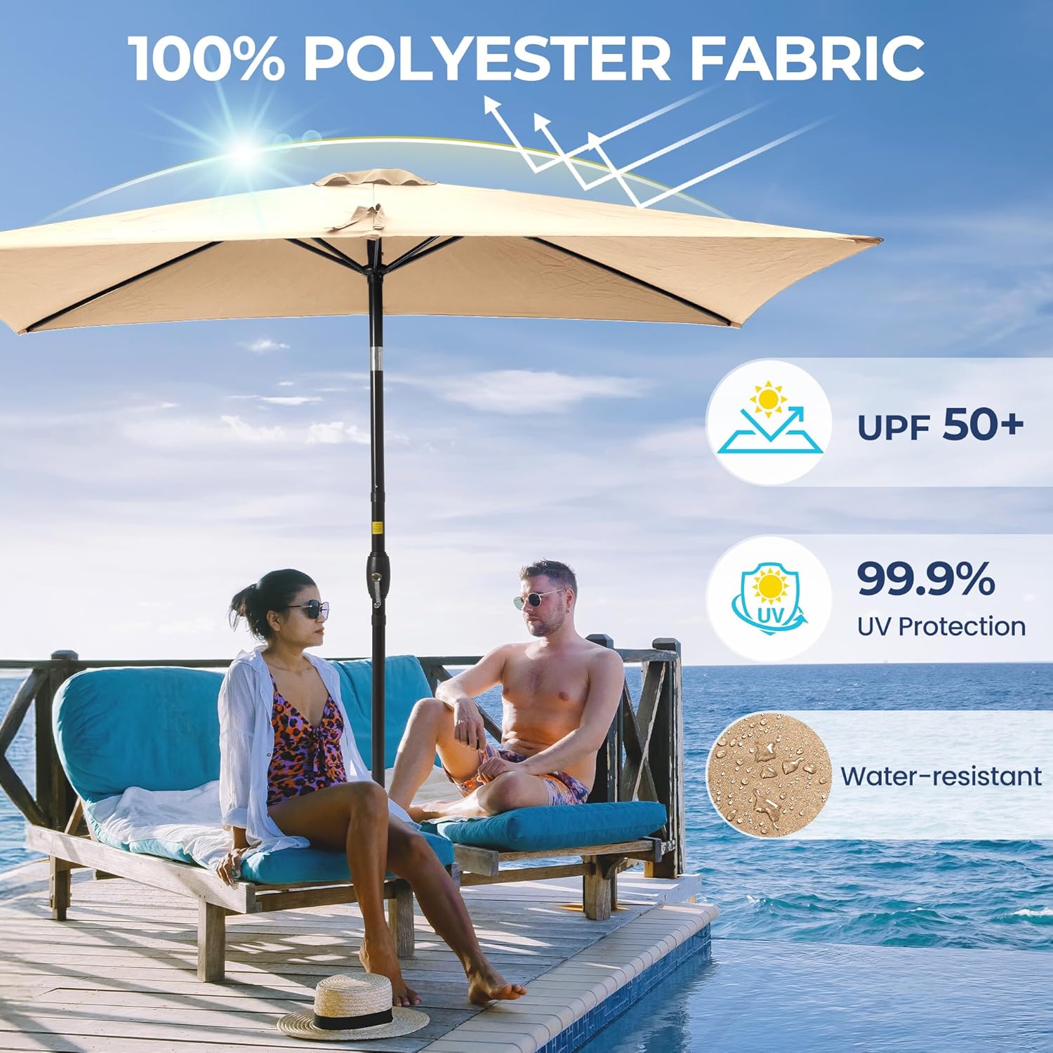 - FADE-RESISTANT: Patio umbrella is made of 100% polyester fiber, waterproof and UV resistant. Garden umbrella 200g/sqm polyester sombrillas de patio can last for many years with colorfastness of Grade 4 min. at 400 hours