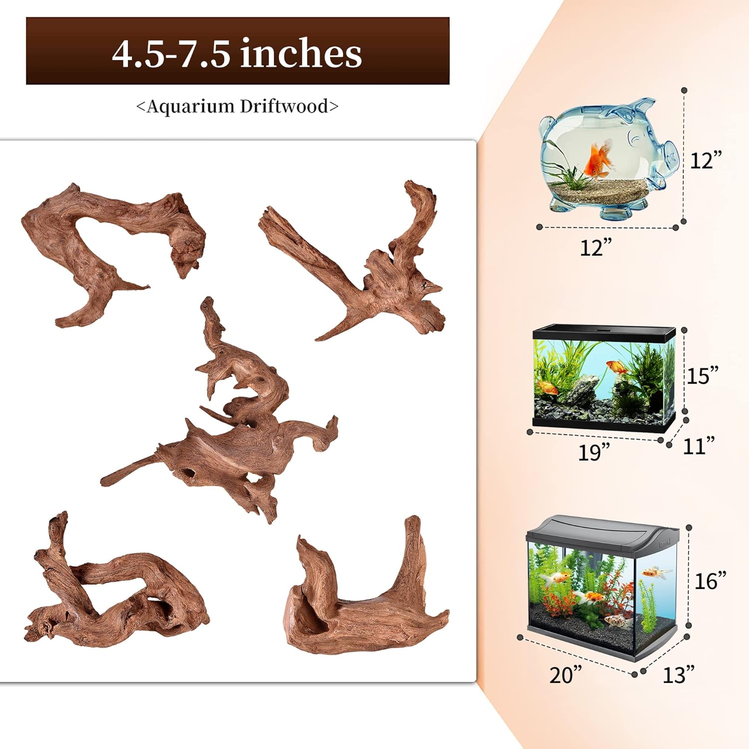- 【Suitable For Tanks 5-10 Gallons】 --- With a size of 4.5 inch-7.5 inch long or even larger, are carefully selected manually and suitable for tanks 5-10 gallons. They can instantly adds natural beauty to your aquarium.