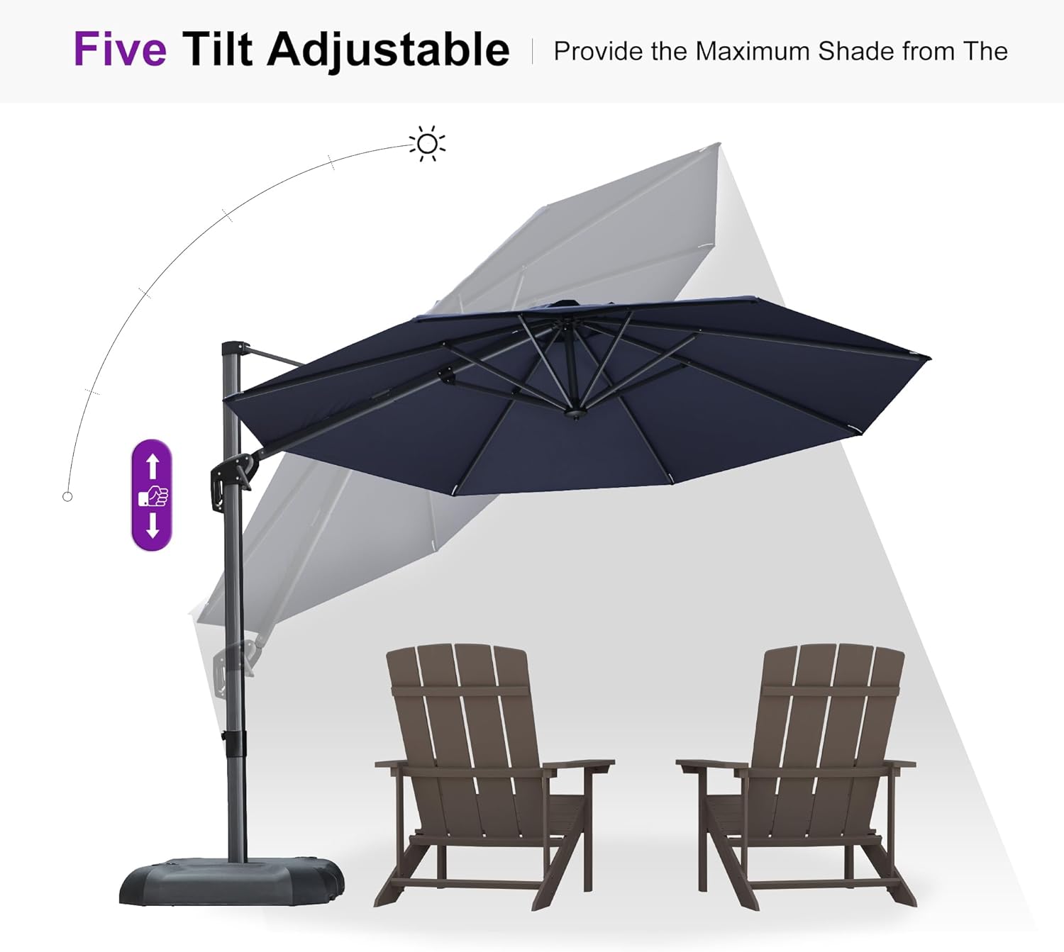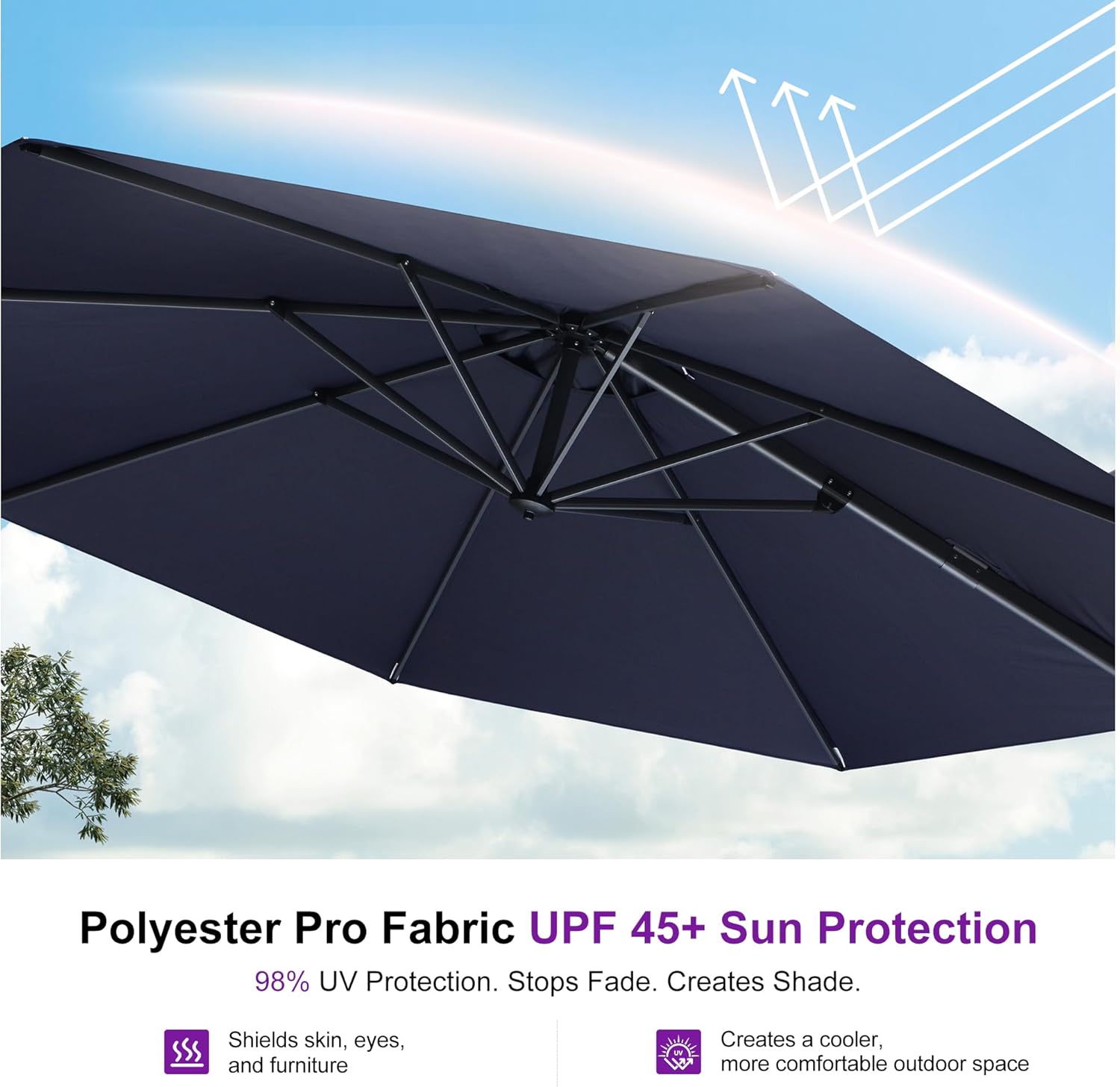 PURPLE LEAF 10 Feet Patio Umbrella Outdoor Cantilever Round Umbrella Aluminum Offset Umbrella with 360-degree Rotation for Garden Deck Pool Patio, Navy Blue