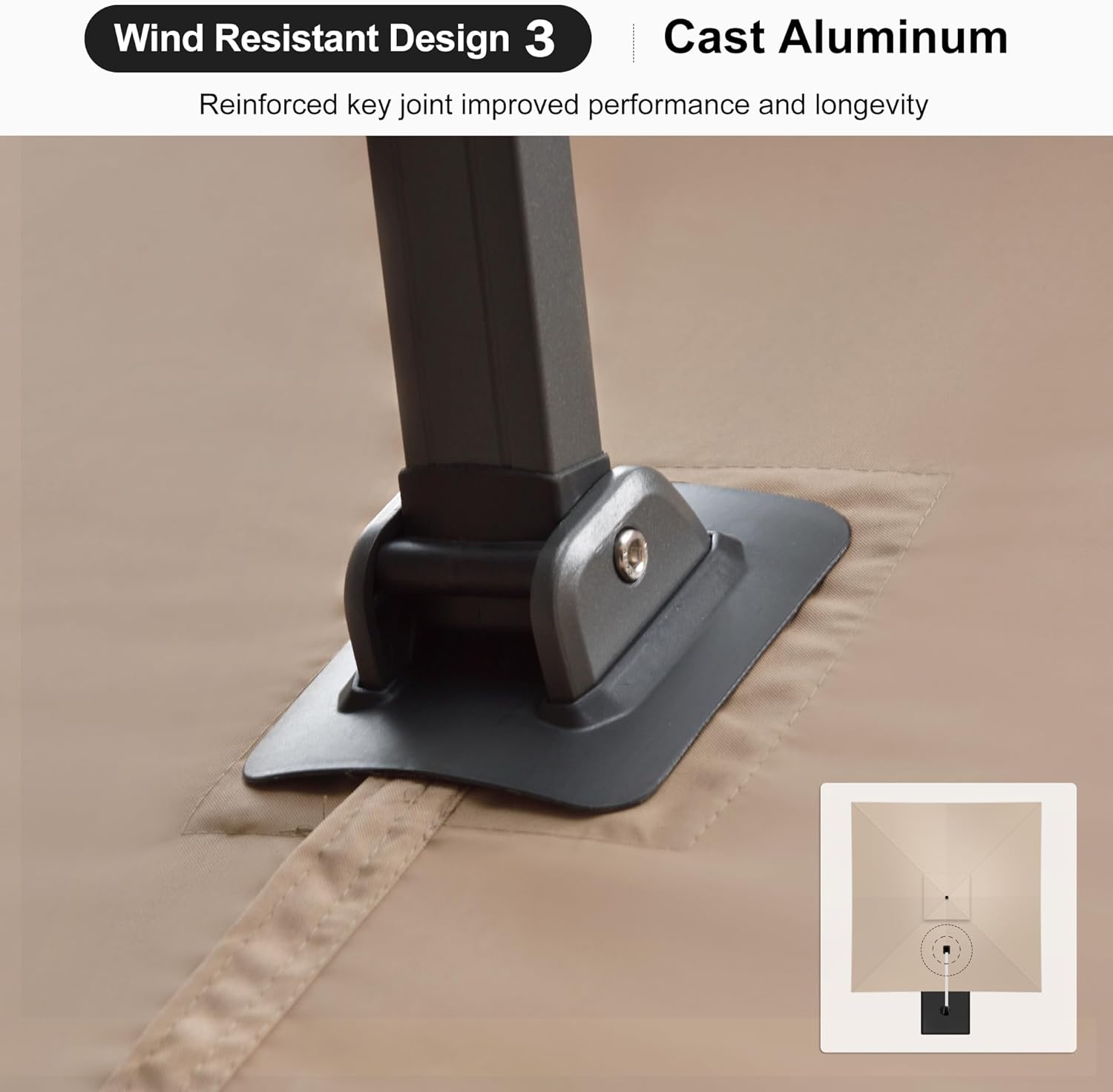 PURPLE LEAF 11FT Cantilever Outdoor Umbrellas Large Patio Umbrella Hanging Double Top Square Offset Umbrella with 360°Rotation Tilting Umbrella Outdoor Patio, Taupe