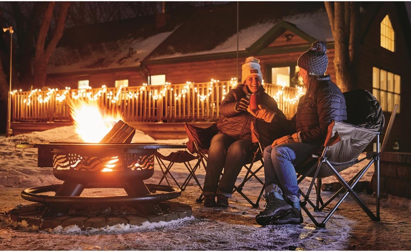 - HIGH-TEMPERATURE RESISTANT β Durable steel fire pit with bbq grate with high-temperature-resistant surface treatment able to withstand high heat.
