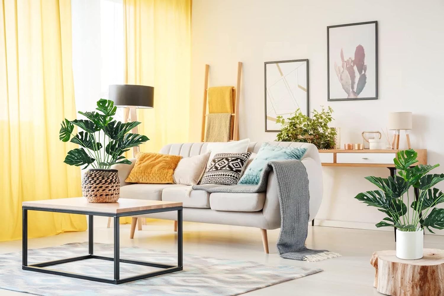 - Artificial Monstera Tree Decoration: Lifelike artificial fake monstera plant arrangement are deceptively natural to the untrained eye. for any landscape project or decorative style. Artificial greenery is a TIMELESS decorative piece that will bring pure notes & refreshing presence to any space all year round