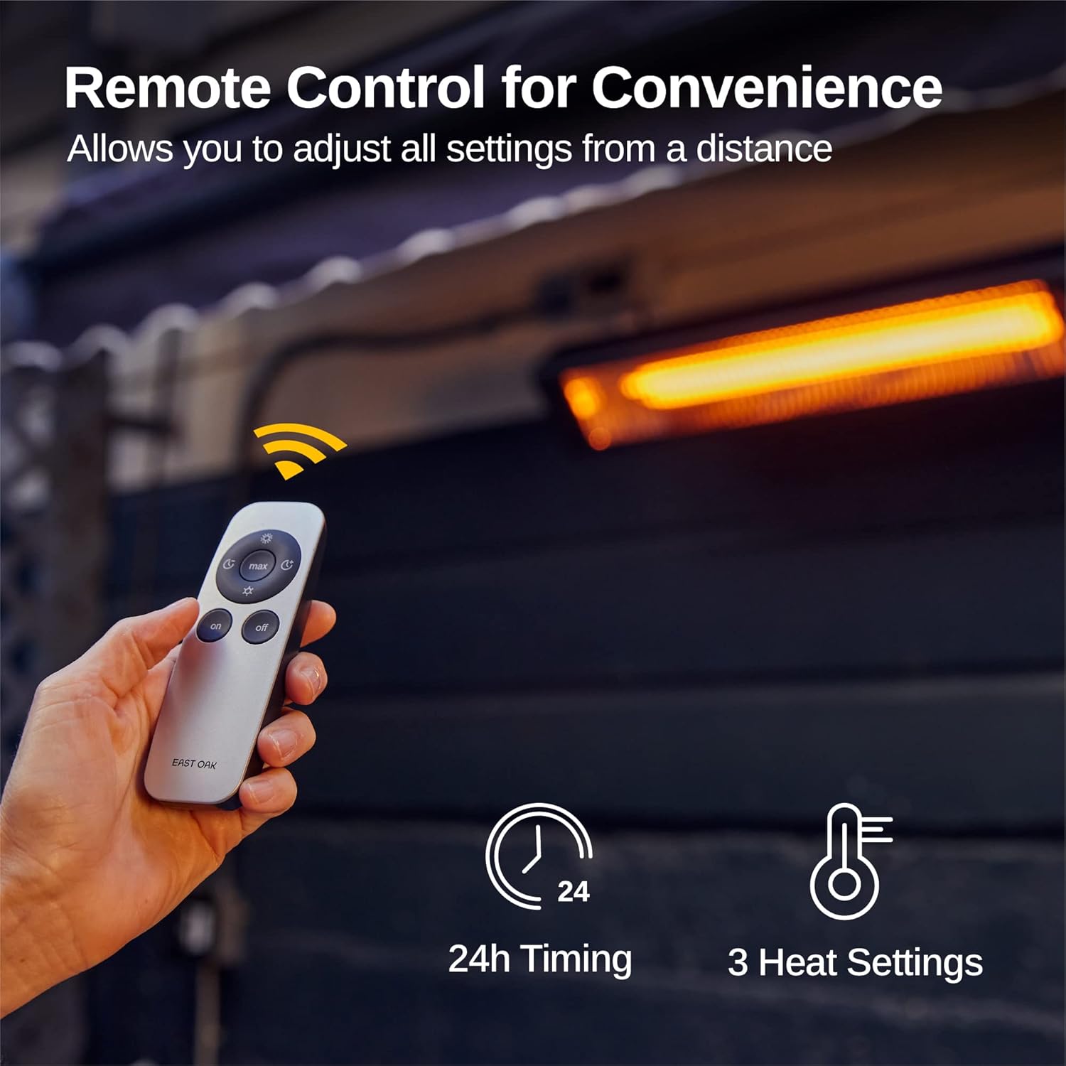 EAST OAK Patio Heater for Commercial Use, 3000W Wall Mounted Electric Infrared Heater, Outdoor Heaters for Patio, Outdoor Heater with IP65 Waterproof & Dustproof Remote Control Black 240V