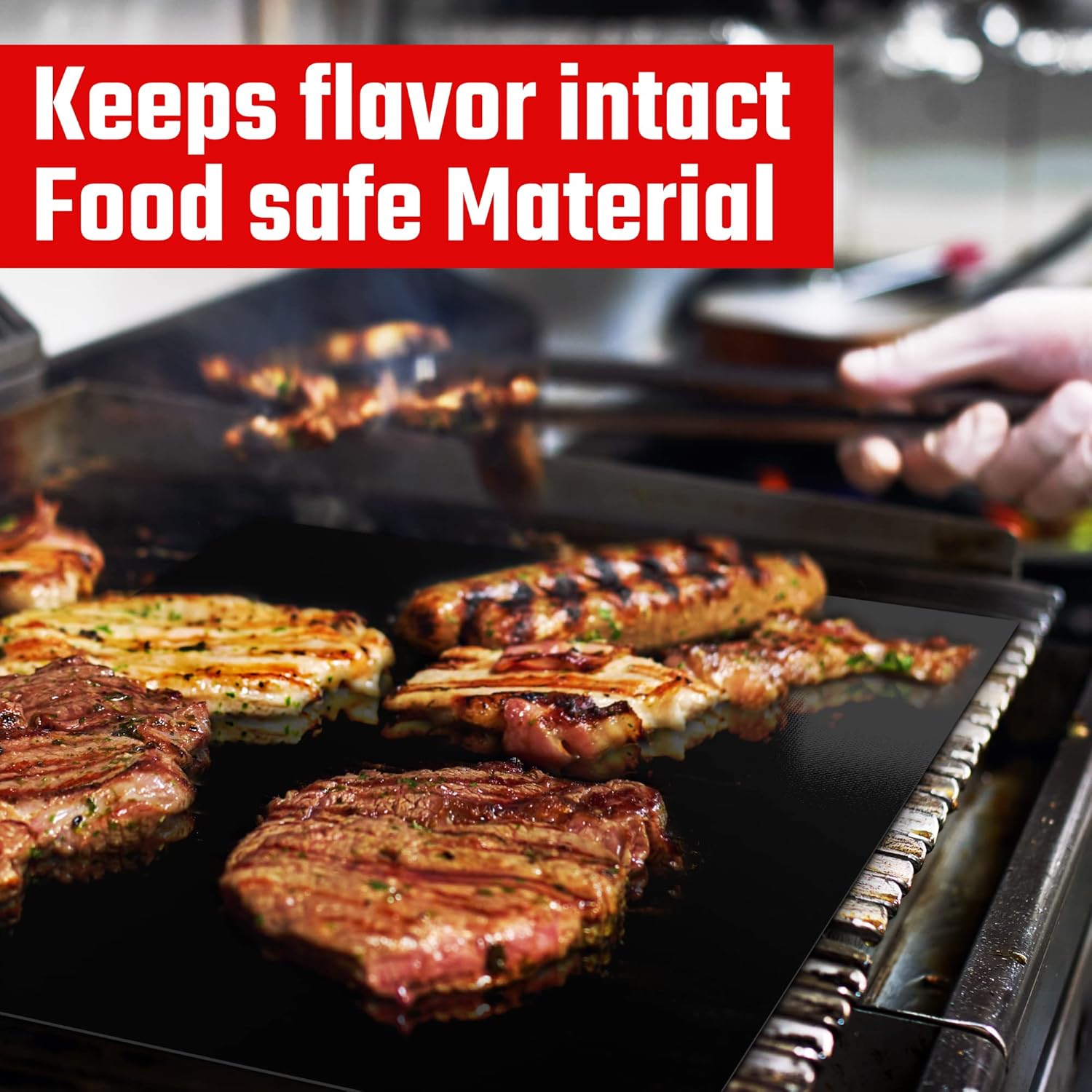 - All Clean? Let's Keep It That Way- With our reusable BBQ Mat you’ll be able to perfectly cook all your meats and keep your grill grease-free, with zero cleaning needed once you’re done. Our black grill mat is heat resistant up to 500 F, sport a PTFE fiberglass coating, are non-stick & dishwasher safe, are 15.7”x13” big and 0.2mm thick so they cover your entire grilling surface, for zero mess. Perfect pair with grill scrubber. A must-have tool for an outdoor BBQ grilling lover