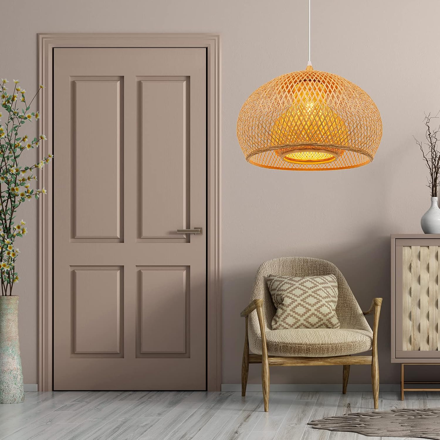 Arturesthome 1 Light Weaving Bamboo Pendant Light for Kitchen Island,17.6" Wicker Chandelier,Handmade Woven Hanging Ceiling Light for Living Room Bedroom
