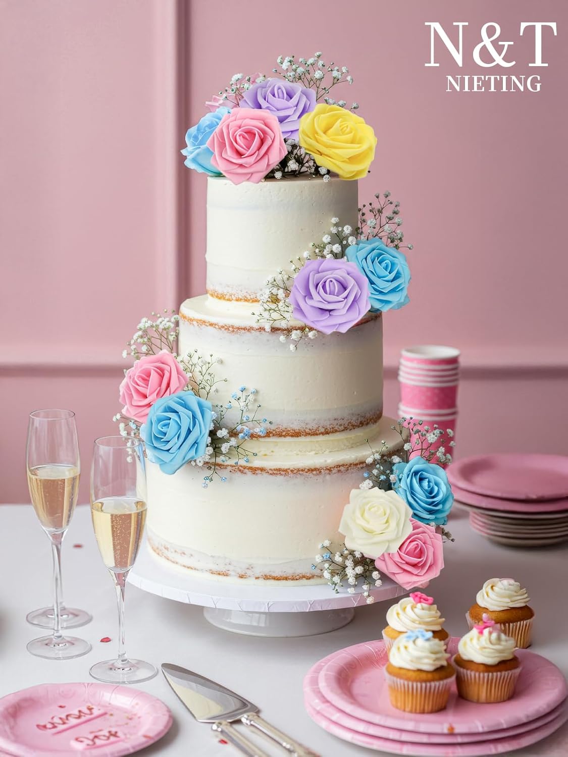 N&T NIETING Artificial Flowers Easter, Fake Flowers Roses Perfect for DIY Wedding Bridal Bouquets Centerpieces Bridal Shower Party Home Flower Arrangement Decorations, 50Pcs, Series Color B