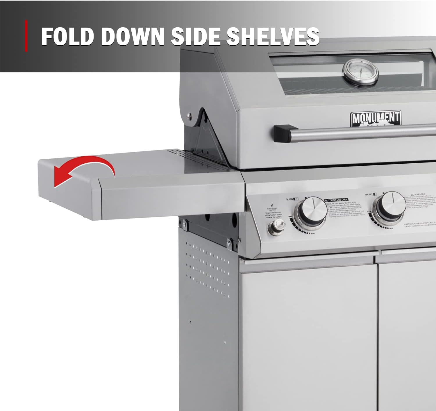 Monument Grills Larger 3-Burner Propane Gas Grills barbeque Stainless Steel Heavy-Duty Cabinet Style with Knob Controls, Outdoor Use, Mesa 300