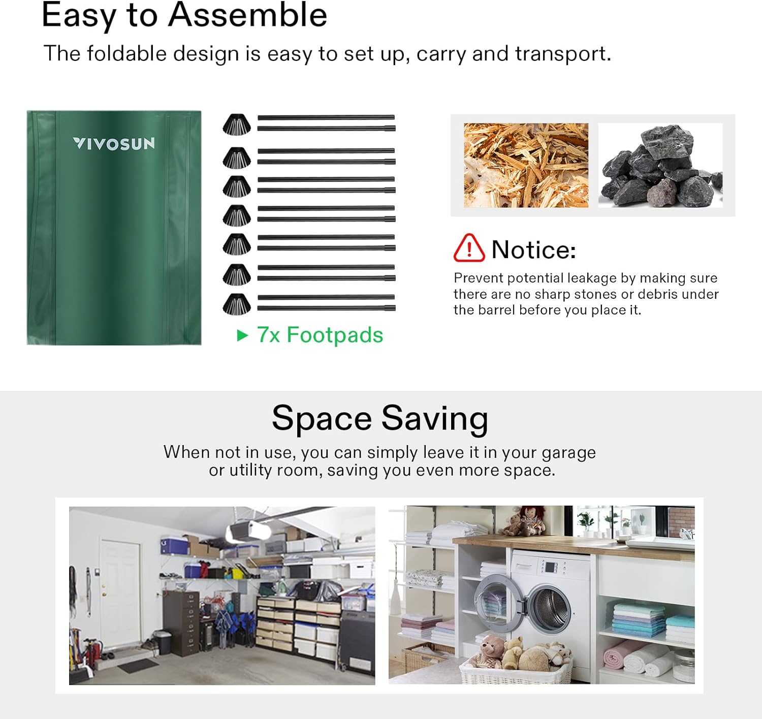 - High-Quality Materials: Our rain barrels are made from 1000D Oxford fabric with a thickened PVC coating to prevent freezing/breakage in bad weather and last a long time; Minimum working temperature: -15°C