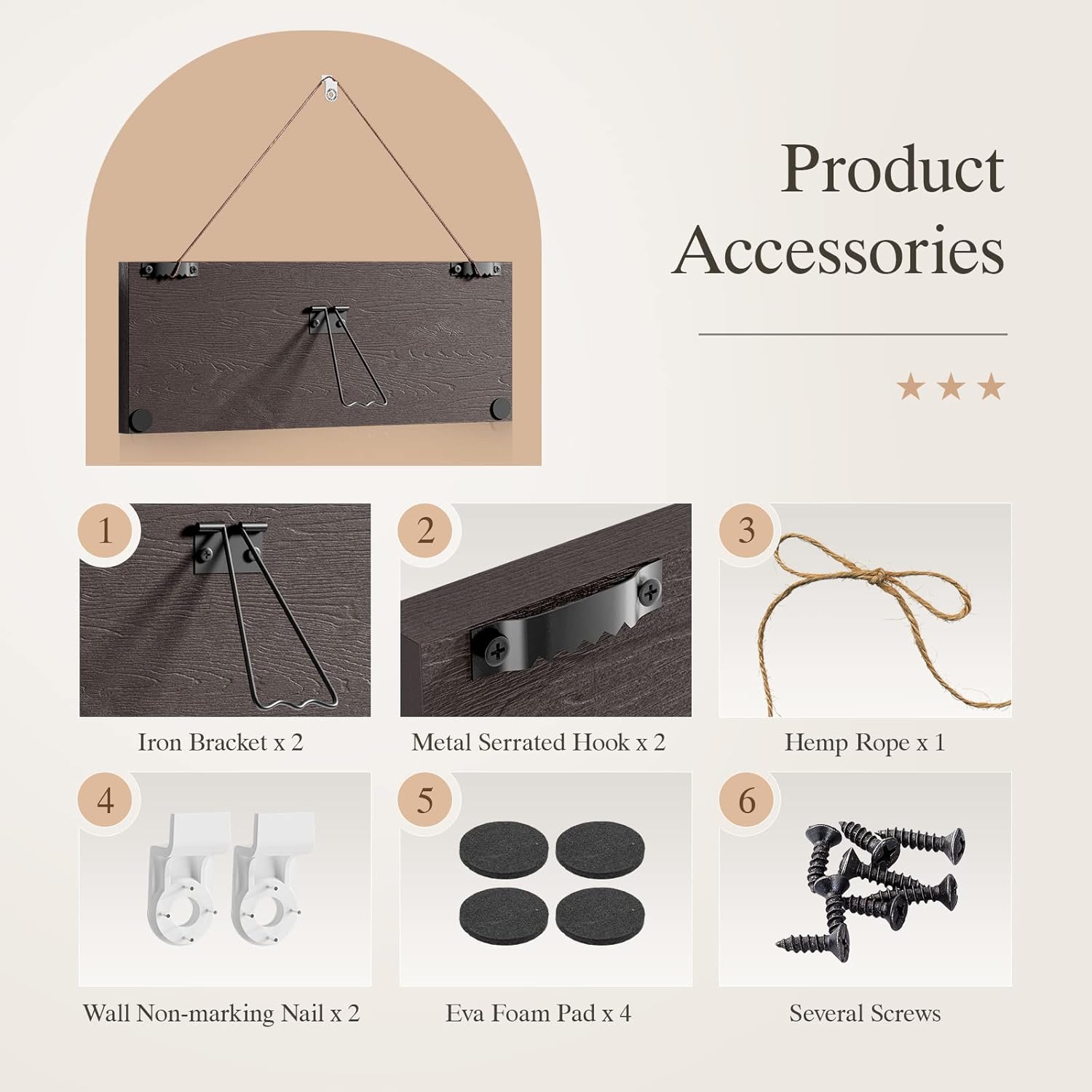 - šŖ Exquisite Home Decoration -- Natural grain wood is suitable for retro style home improvement, country house, lake house, new office, personal studio. Comes with a variety of accessories, as long as it is simple to install, it can be hung on the wall or placed on the desktop.