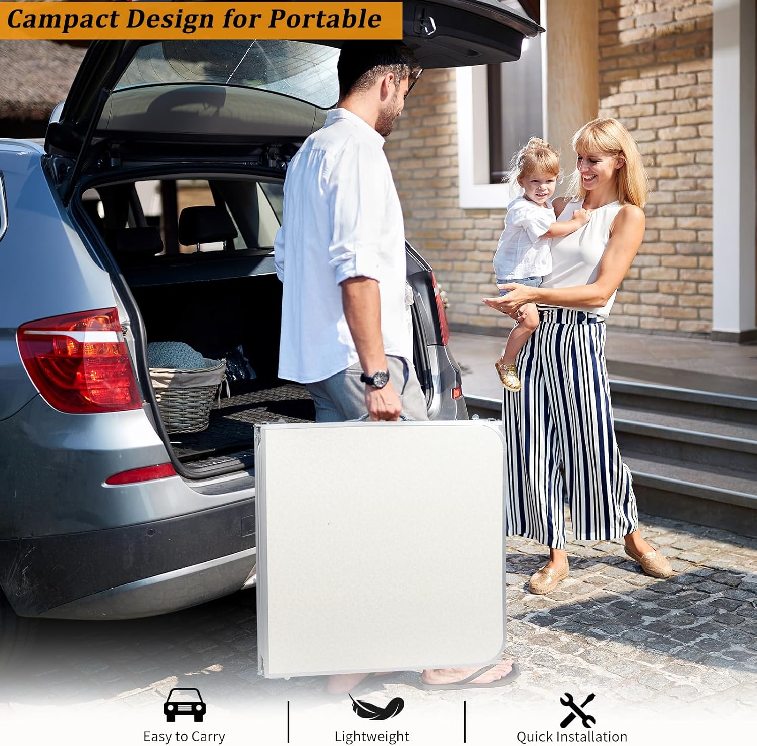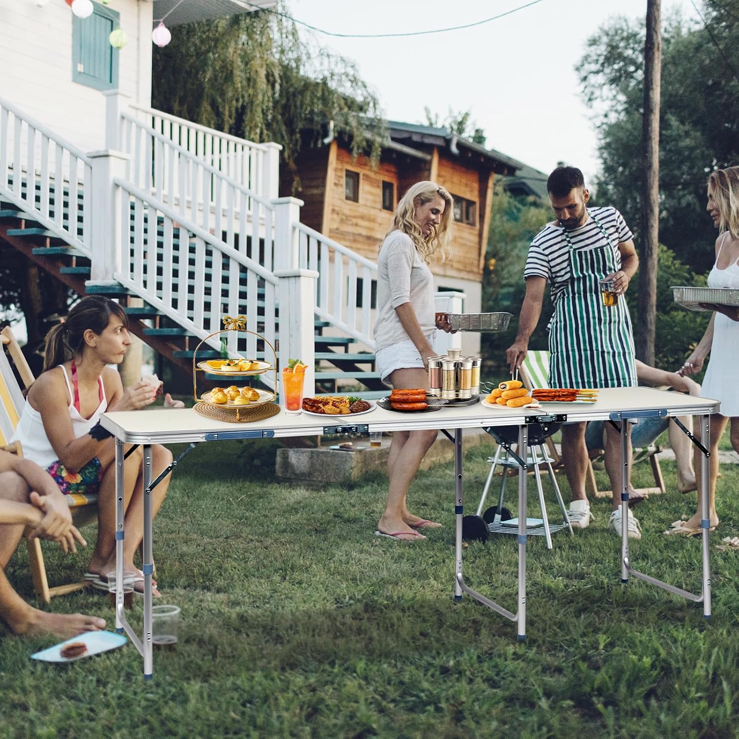 - ăCONVENIENT DESIGNăThe rv outdoor table can be easily opened in seconds with just a few simple steps. Quickly fold with the side locks and carry handle. The desktop features fiberboard that is easy to clean stains only by swiping. The 6ft folding table provide convenience in a variety of places for you