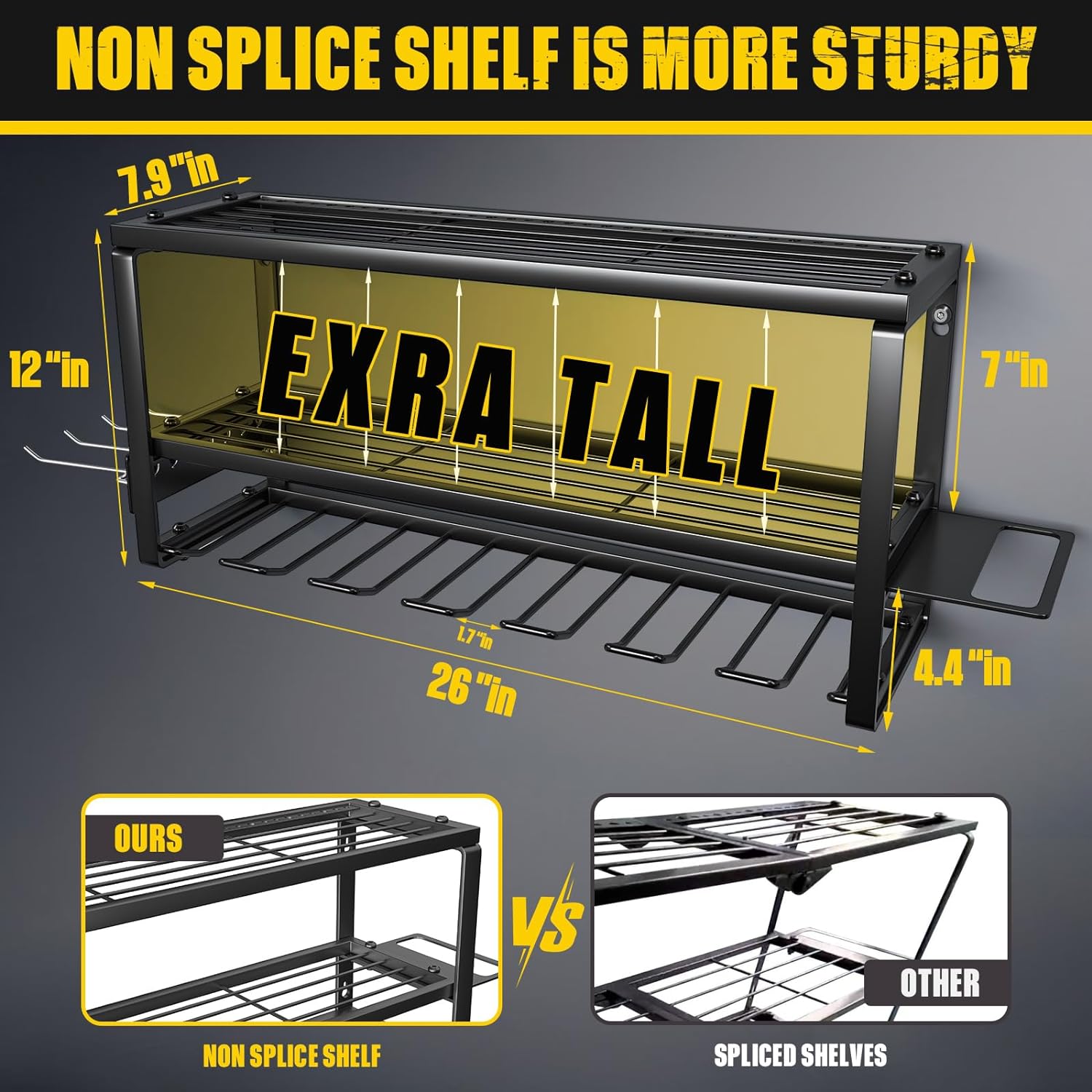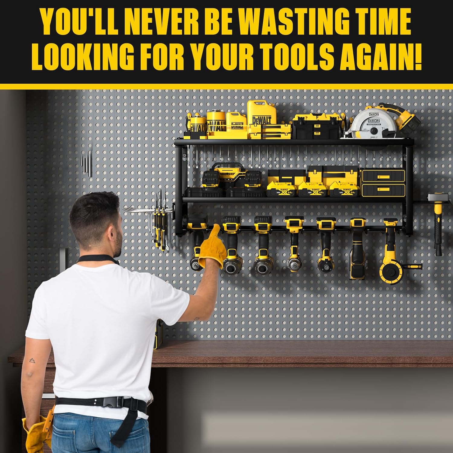 - 【LARGE SIZE】:Our power tool organizer has upgrade 7-slot cordless drill holder with three-layer design and double side hanger. Huge space means you can keep all of your tools organized in one central location and you'll never be wasting time looking for your tools again!