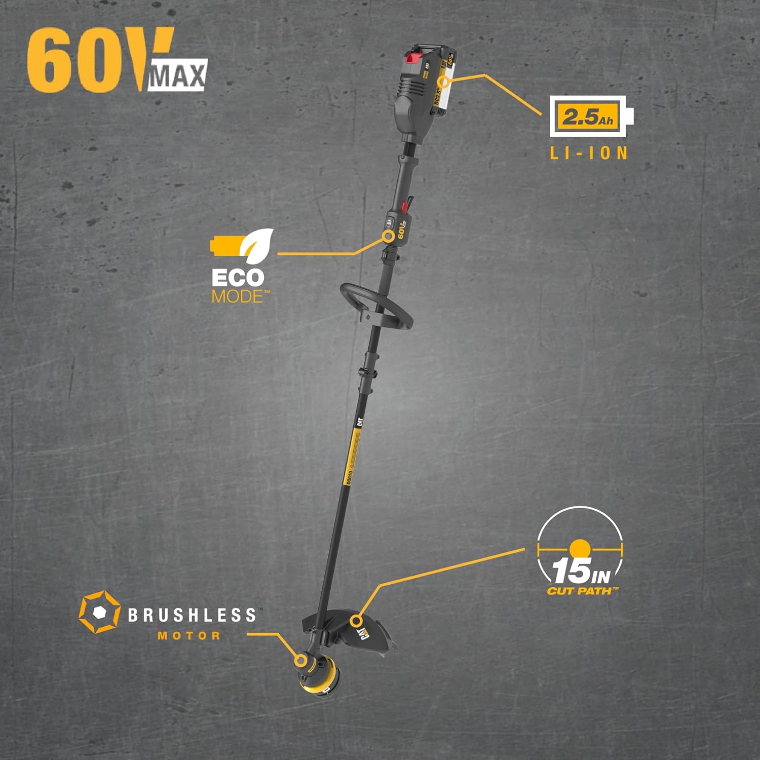 Cat DG610 60V 15” Brushless String Trimmer Cordless with Dual Line Bump Feed Head, Edger with Quick Line Load, Weed Trimmer with ECO Mode for Extended Runtime – Battery & Charger Included
