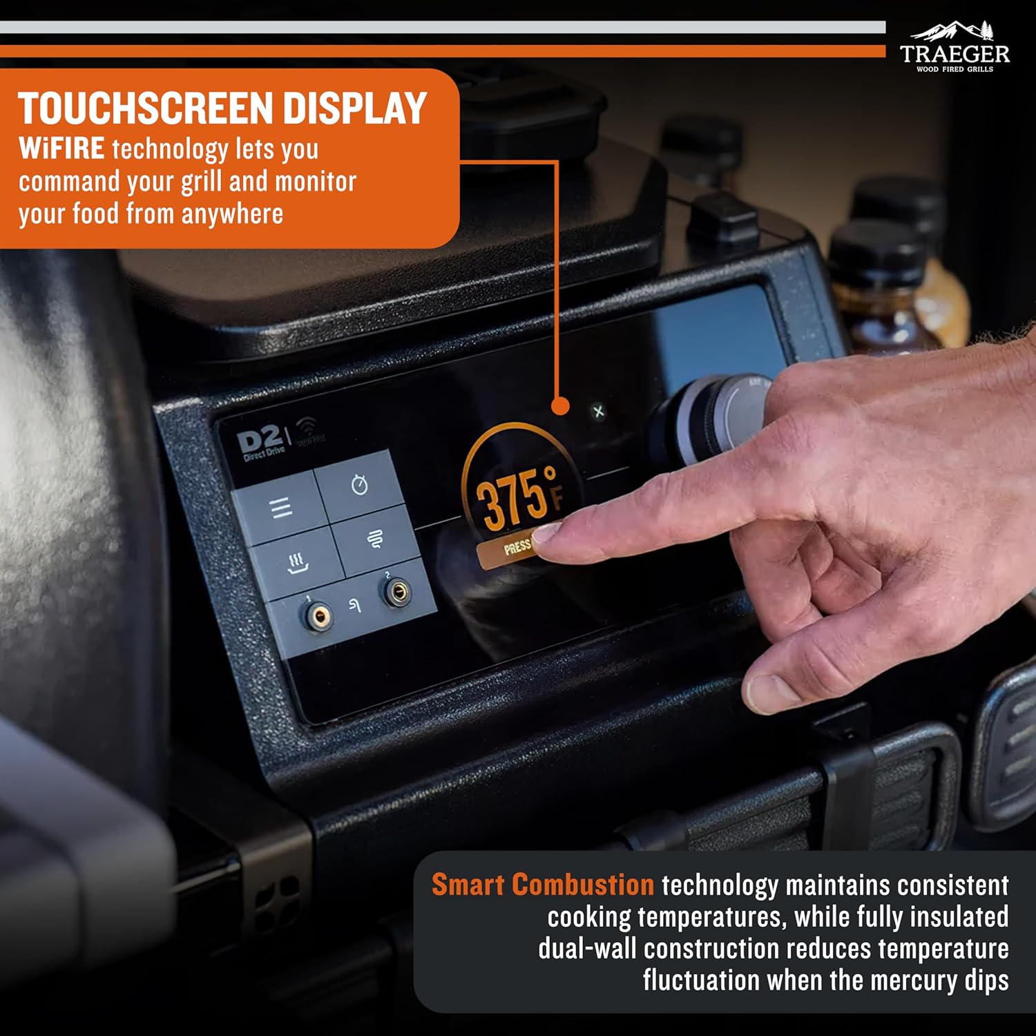 - WiFIRE App Connectivity: Control your grill from anywhere using the Traeger app. Monitor temperature, set timers, and access wood-fired recipes, perfect for backyard BBQs, weekend smoking, and effortless outdoor cooking.