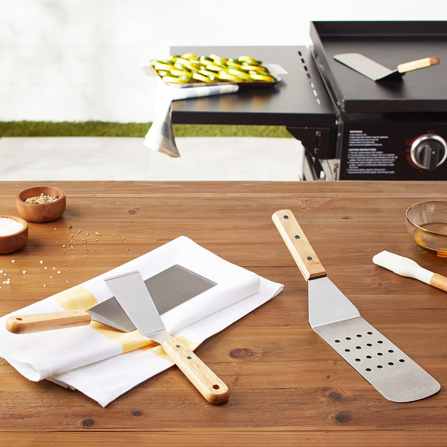 - 4-piece barbeque spatula set for outdoor cooking