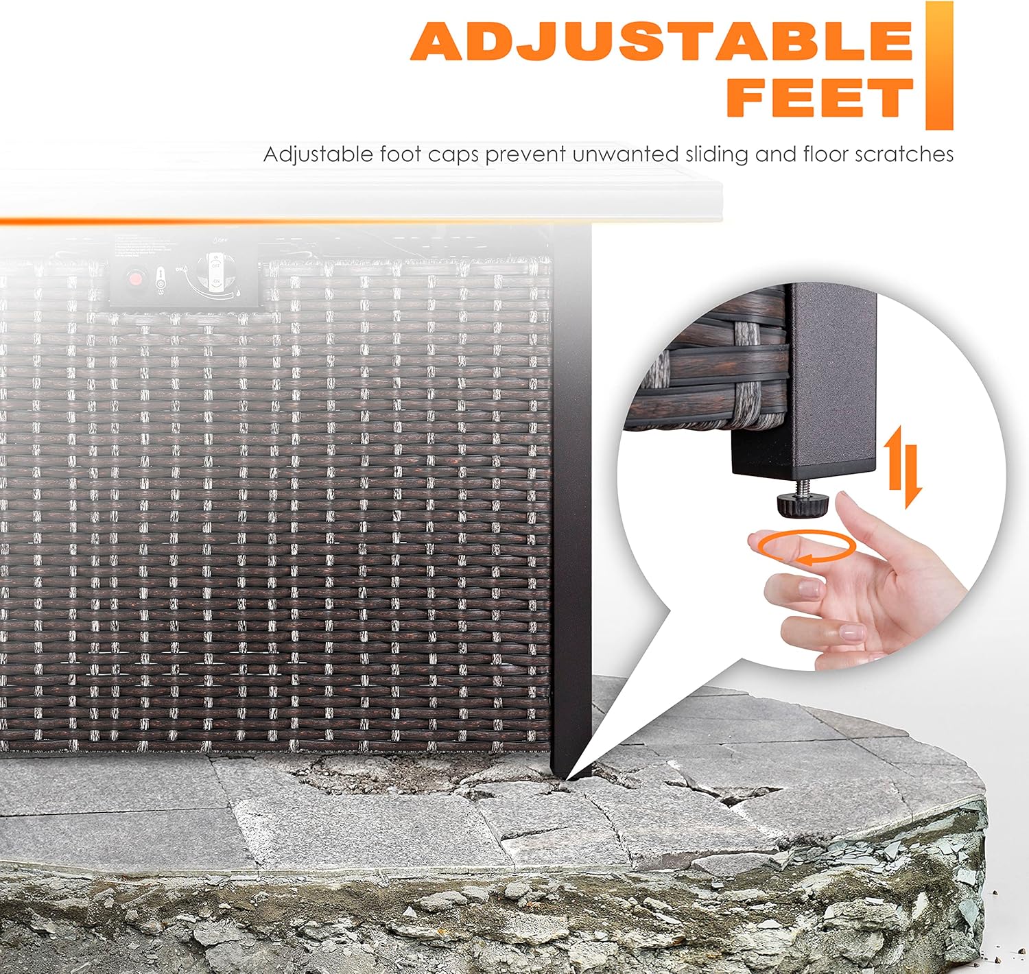 - DURABLE WICKER WITH COVER: Rust-proof and weather-resistant aluminum tabletop with stainless steel frame, NUU GARDEN propane fire pit table is heat-resistant. Use the matching oxford fabric cover when the outdoor gas fire table is not in use which is windproof, waterproof
