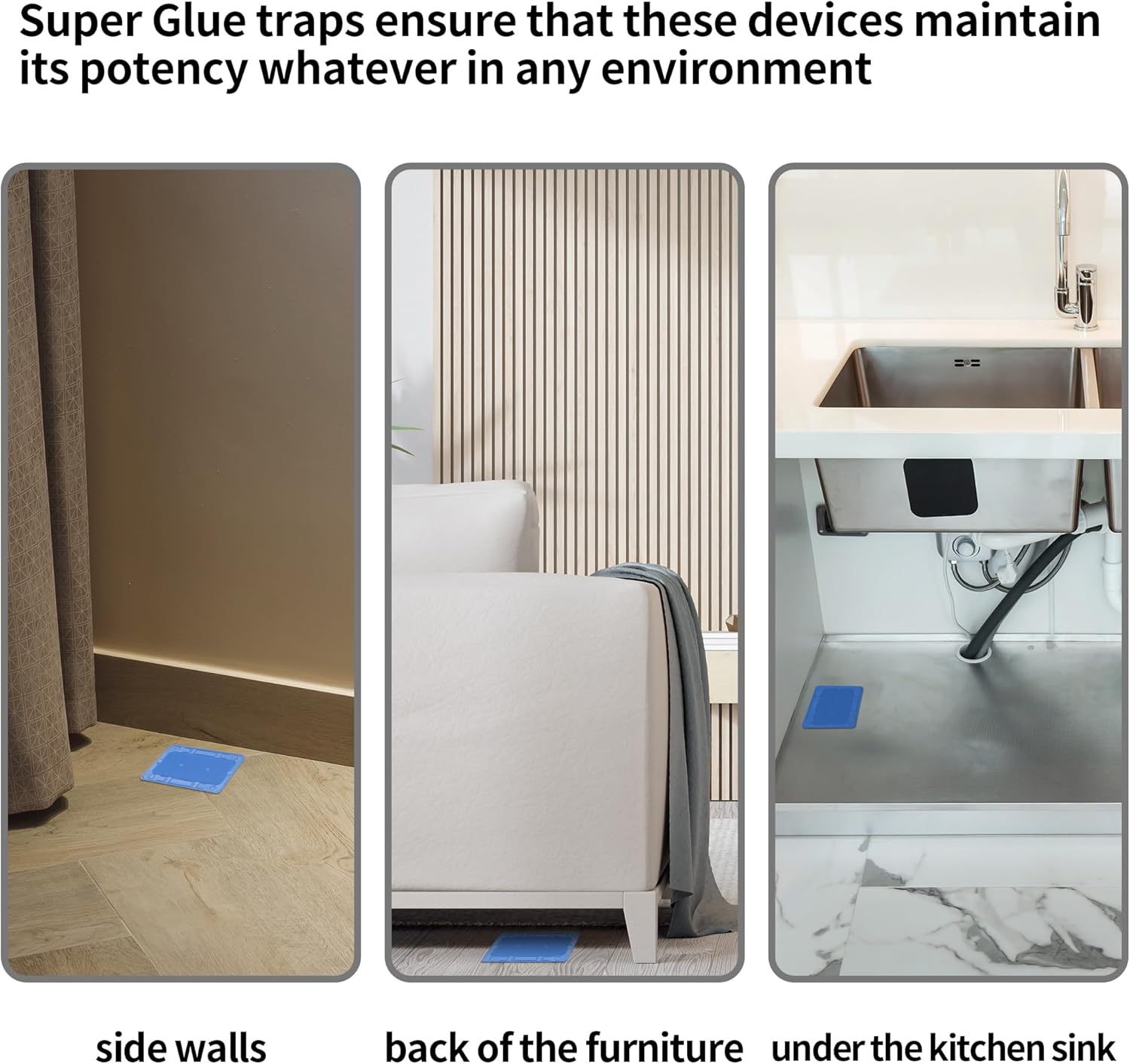 - Non-toxic Super Glue: Our mouse traps use super glue that can withstand the cold weather. Once the mouse or insect is stuck, it can no longer break free, and these glues are non-toxic, harmless to your children and pets. They are safe for use inside your house.