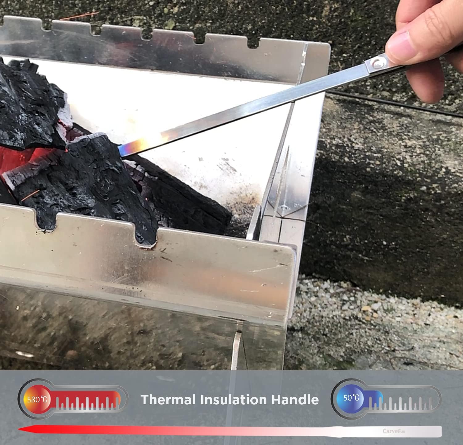 - The Innovative Thermal Insulation Handle Design: Won't Burn Your Fingers When Grabbling The Handle, As A Bonus, The Carvefun Kebob Skewers Set With A Food Removal Bag And A Exquisite Carrying Pouch ,Use The Food Removal Bar To Slide Food Off The Skewer When Kebabs Are Finished Grilling Works In The Oven, Charcoal, Gas, And Portable Grill- Fire And Heat-Resistant The Heat-insulated Handles Donβt Get Hot