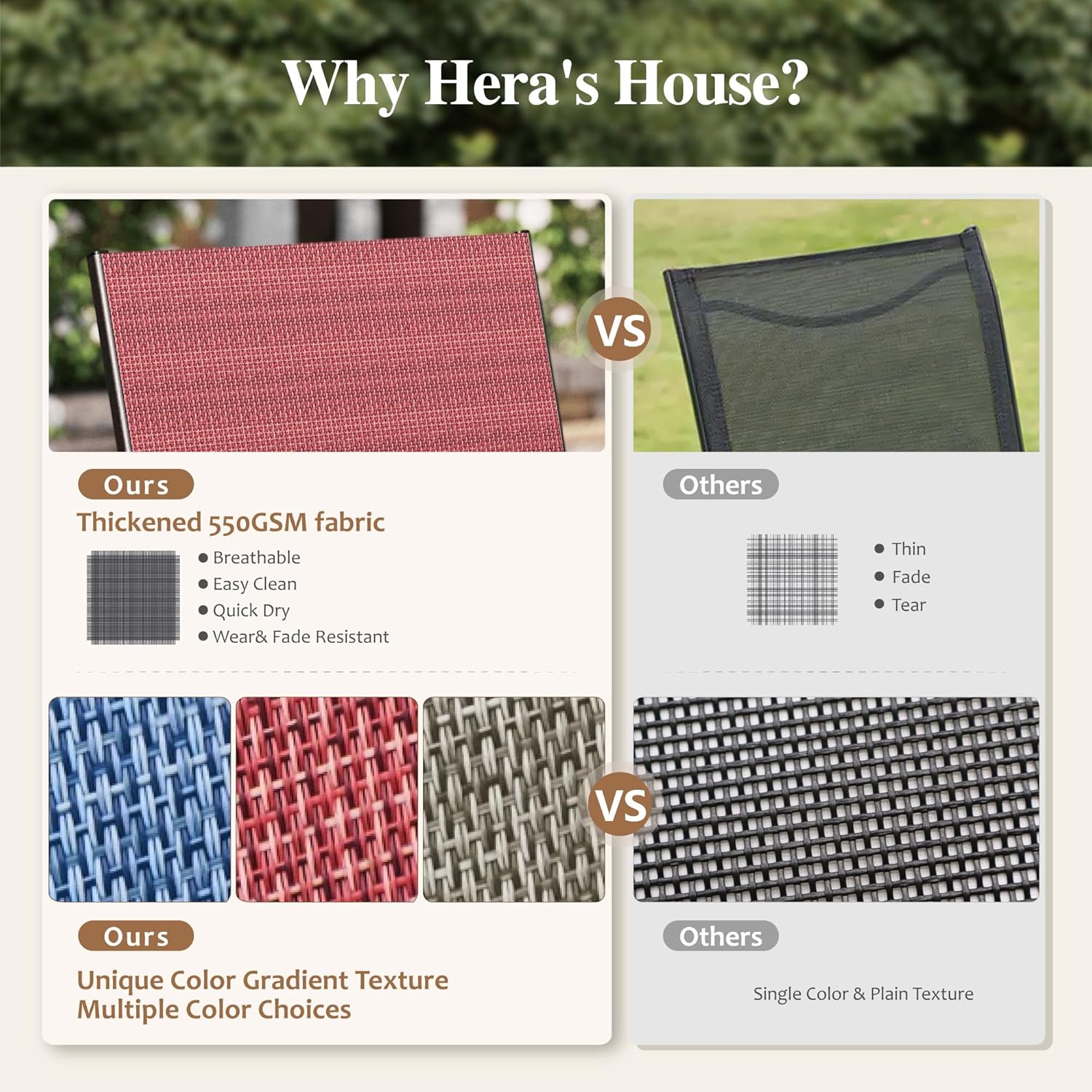 HERA'S HOUSE Red Patio Dining Set for 4, 5 Piece Outdoor Table and Chairs Set, 4 x Textilene Dining Chair, 37" Square Metal Dining Table, for Lawn Garden Backyard Deck