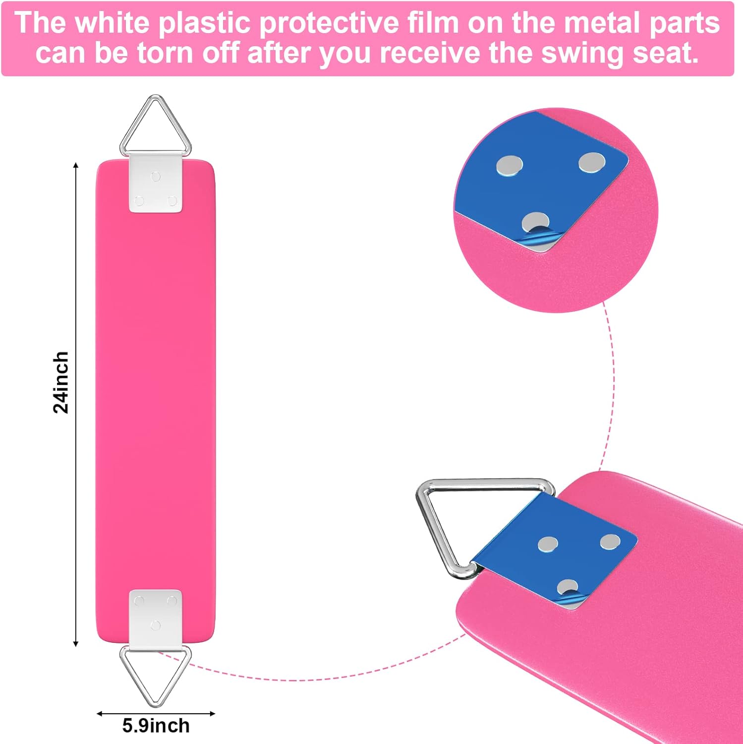 AGPTEK Swing Seat, 30.4 x 6 x 0.27 Inch Yard Swing for Boys and Girls & Adults with Metal Triangle Ring - Pink (113KG /250LB Weight Limit)