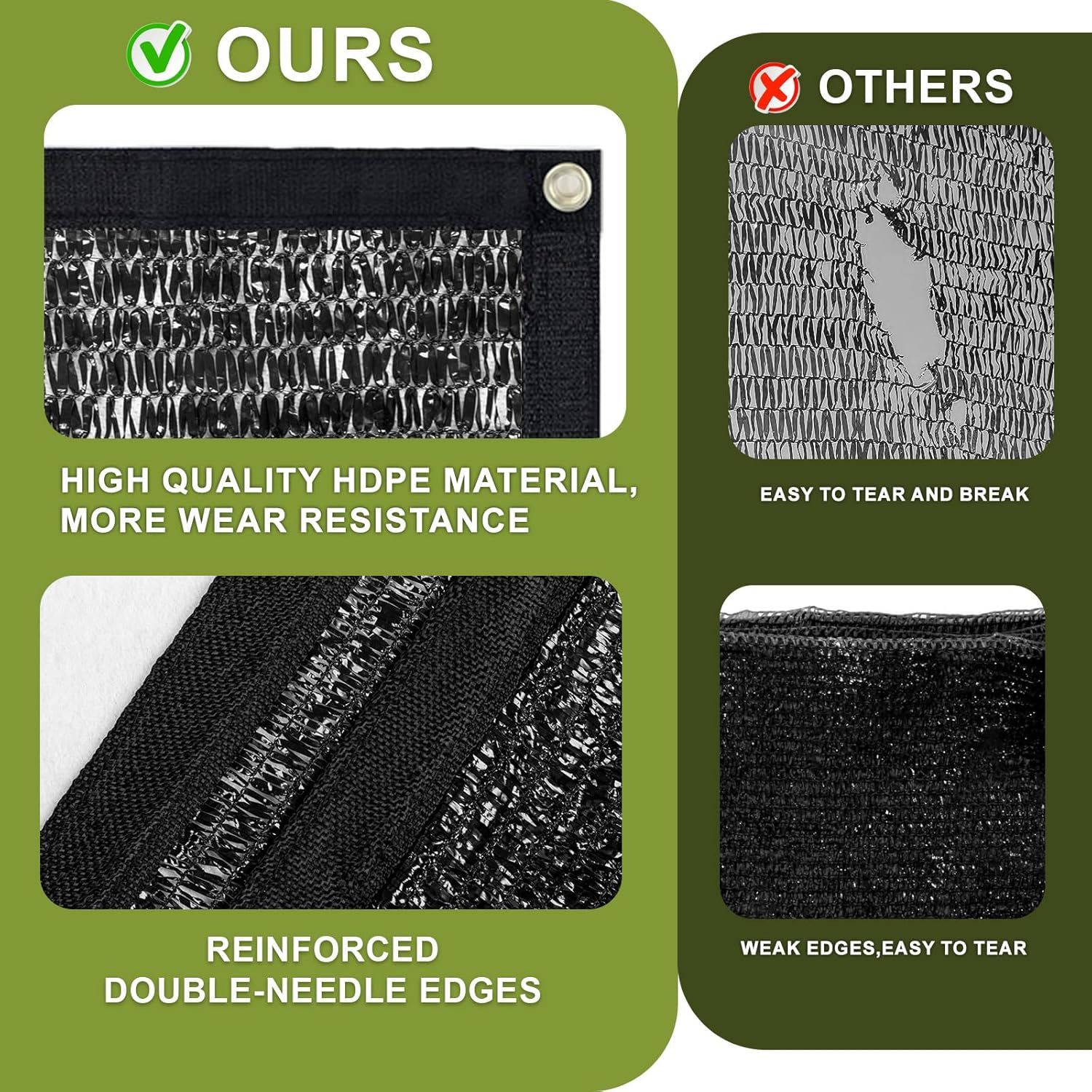 - 【High Quality】Made of 100% high-density polyethylene fabric, this garden shade cloth is excellent for anti-aging and can last for 2-3 years. The mesh is lightweight, durable and breathable, making it a perfect plant cover and summer shading option. Please note that due to the characteristics of this material, there may be a tolerance of ±4 inches from edge to edge